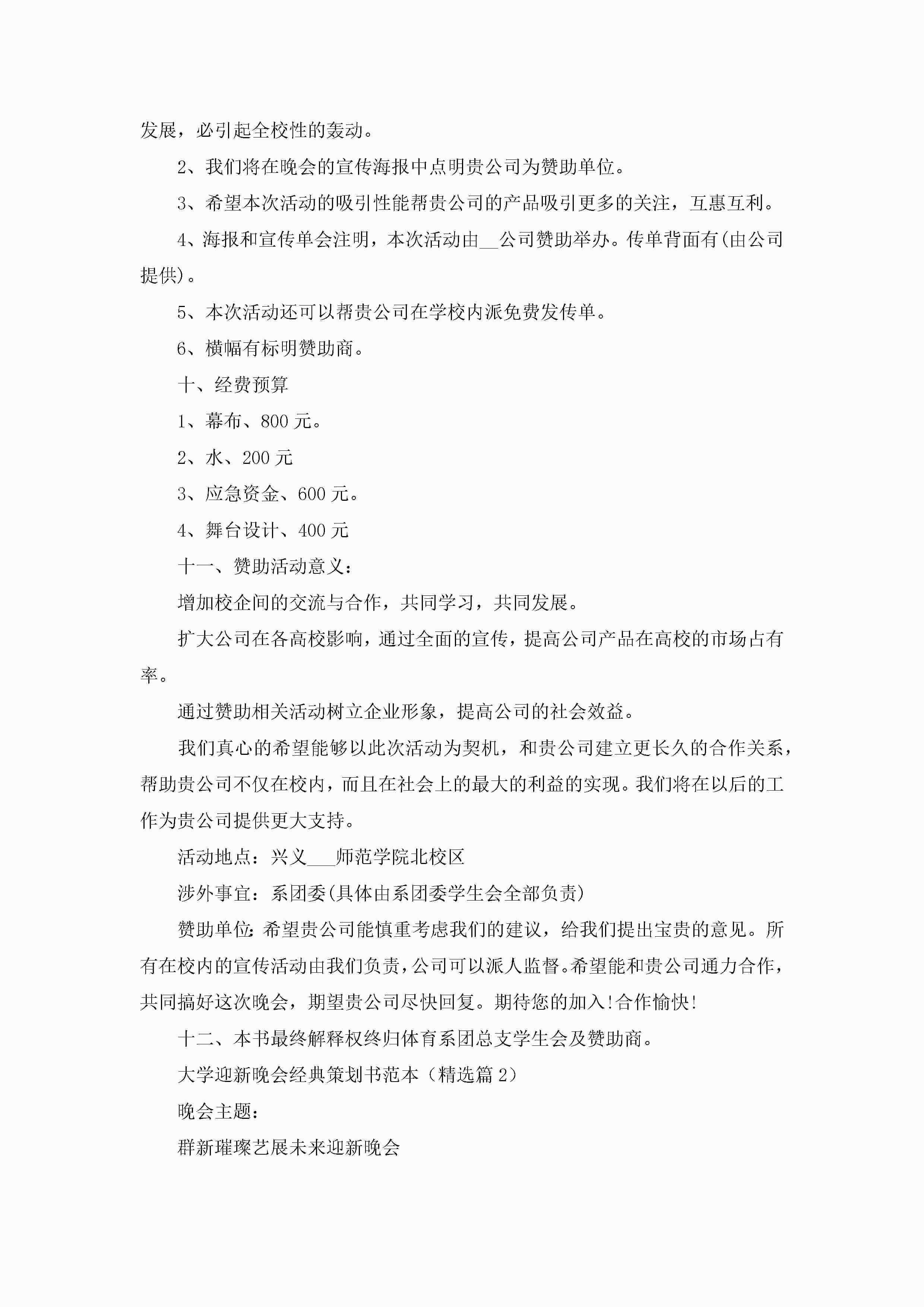 大学迎新晚会经典策划书范本5篇(实用)jugei3月23日 01:54发布关注208 大学迎新晚会经典策划书范本5篇(实用)此内容为付费资源,请付费后查看¥10.9 单篇文档限时特惠¥15个人会员开通企业会员开通立即下载无需登陆!可直接快捷下载单个模板付费资源© 版权声明THE ENDWord模板# 实用文档# 策划书# 工作文档# 活动策划 如有问题,可点击最底部“联系我们”联系客服 分享QQ空间微博QQ好友海报分享复制链接收藏