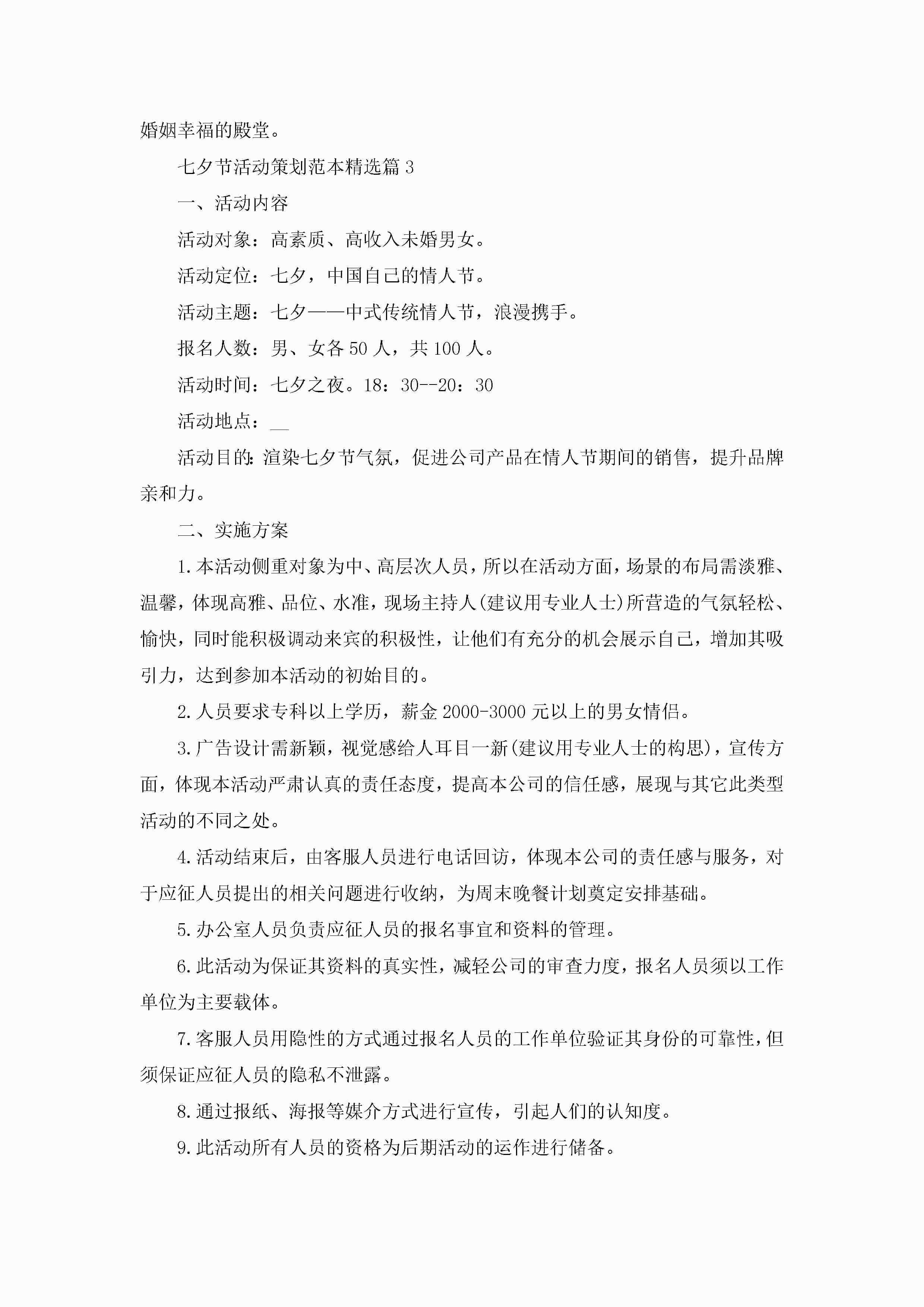 七夕节活动策划范本5篇(实用)jugei3月23日 01:54发布关注211 七夕节活动策划范本5篇(实用)此内容为付费资源,请付费后查看¥10.9 单篇文档限时特惠¥15个人会员开通企业会员开通立即下载无需登陆!可直接快捷下载单个模板付费资源© 版权声明THE ENDWord模板# 实用文档# 策划书# 活动策划# 七夕节活动策划 如有问题,可点击最底部“联系我们”联系客服 分享QQ空间微博QQ好友海报分享复制链接收藏