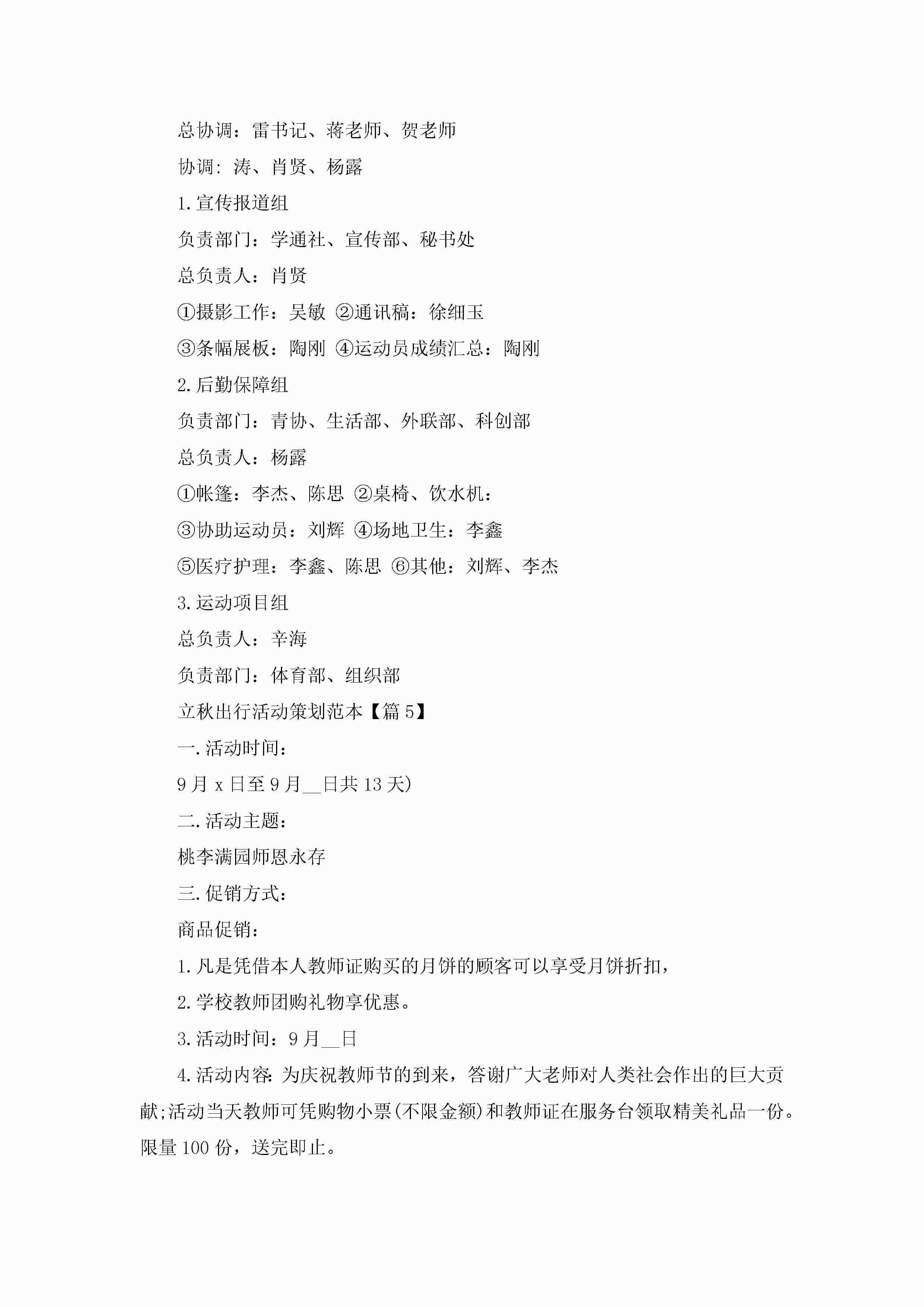 立秋出行活动策划范本5篇(精选)jugei3月23日 01:54发布关注255 立秋出行活动策划范本5篇(精选)此内容为付费资源,请付费后查看¥10.9 单篇文档限时特惠¥15个人会员开通企业会员开通立即下载无需登陆!可直接快捷下载单个模板付费资源© 版权声明THE ENDWord模板# 实用文档# 策划书# 工作文档# 活动策划 如有问题,可点击最底部“联系我们”联系客服 分享QQ空间微博QQ好友海报分享复制链接收藏