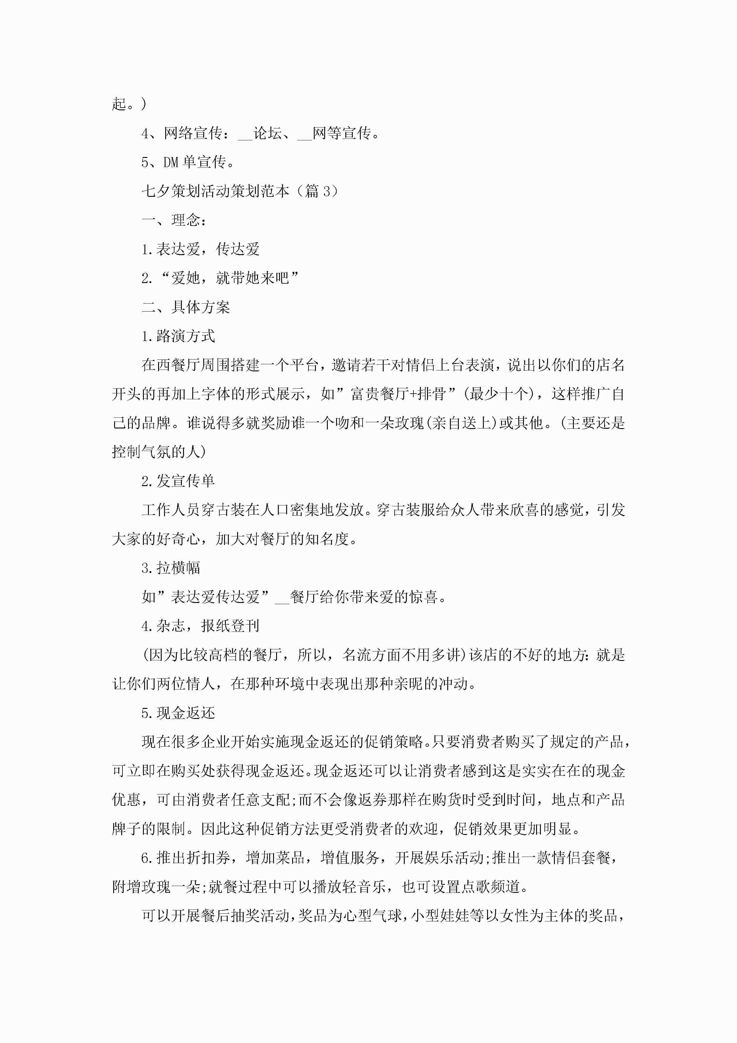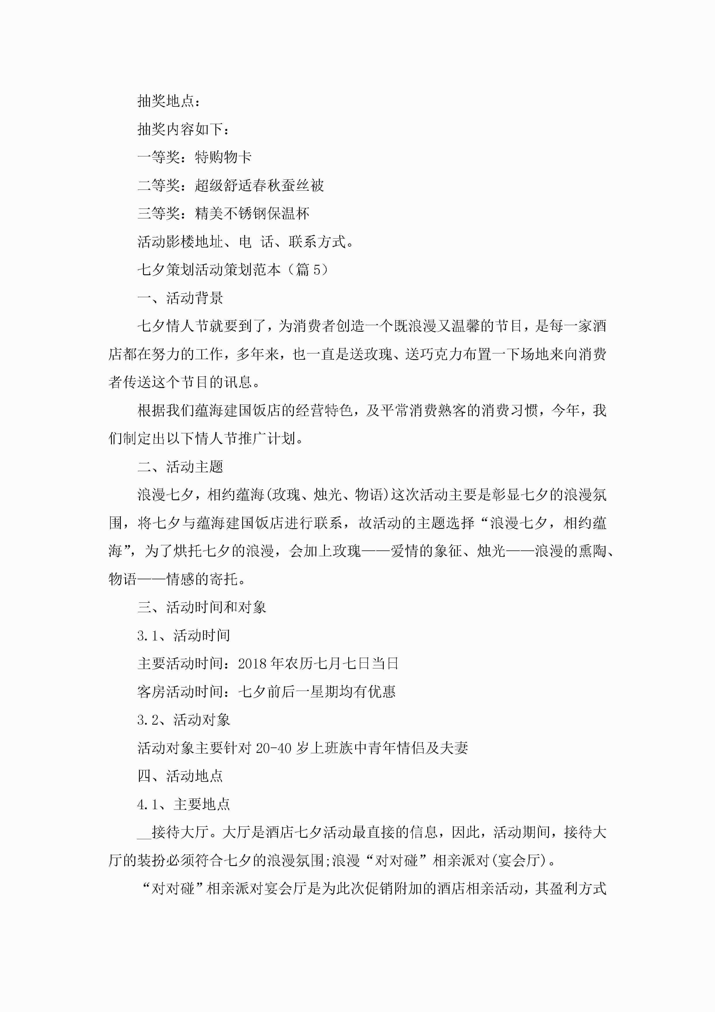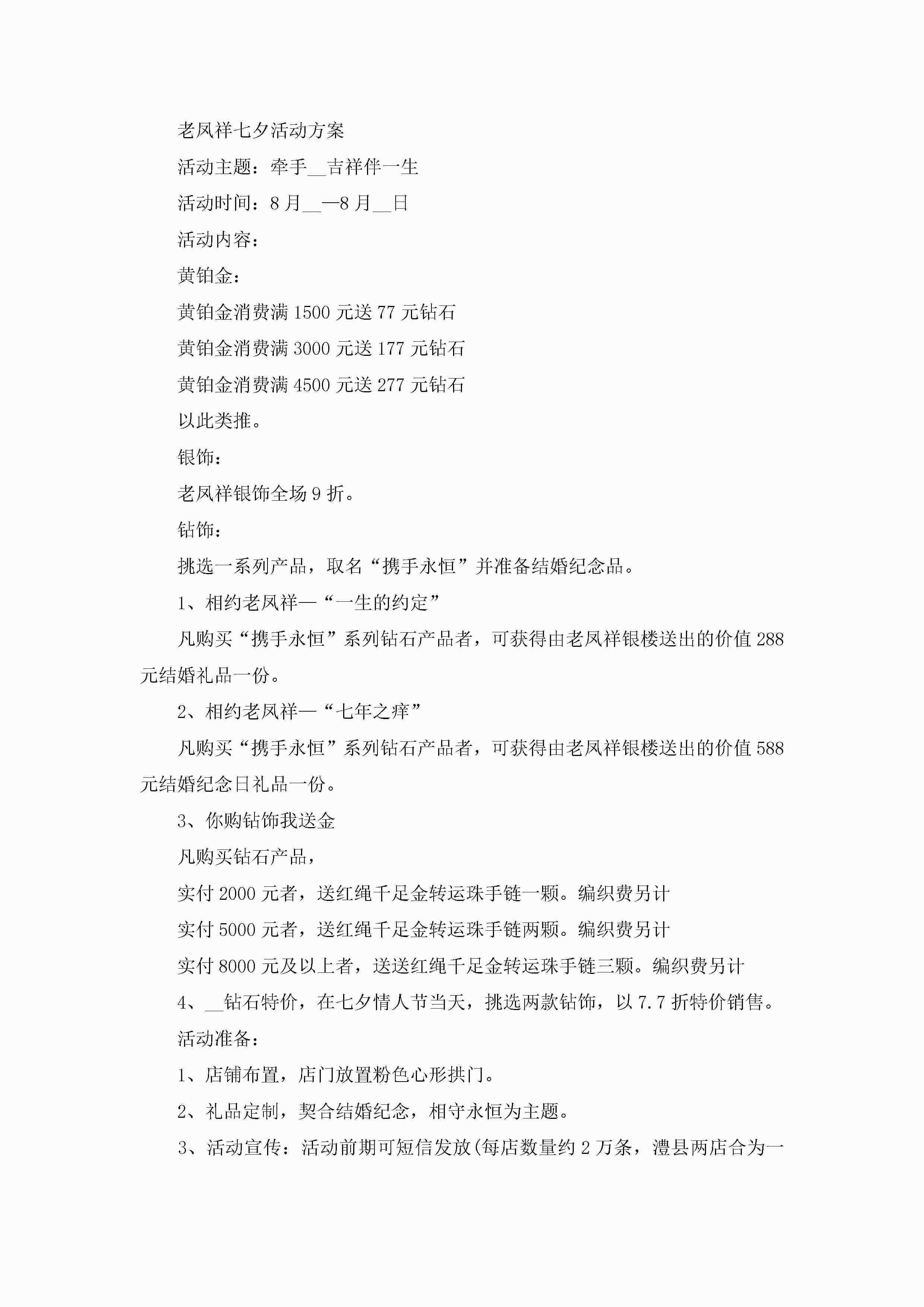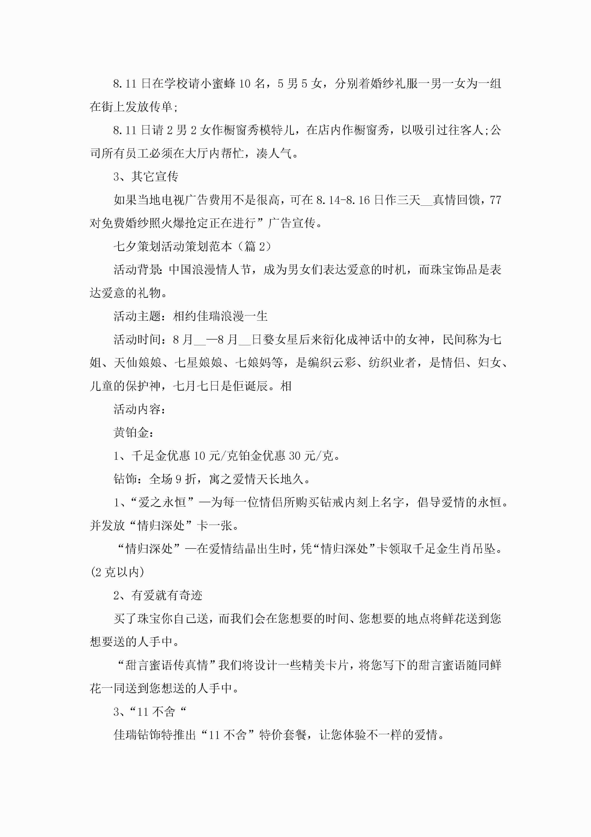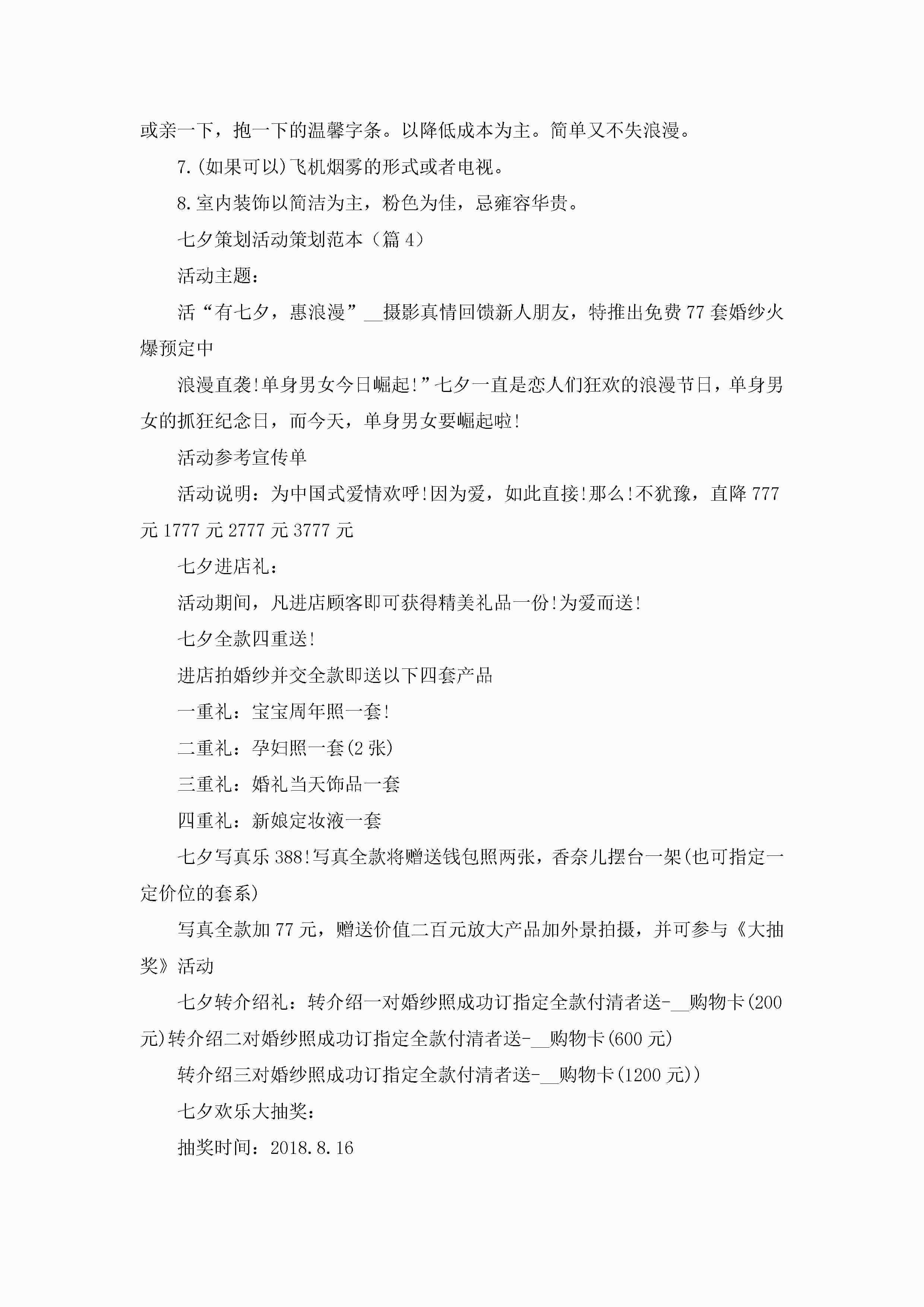 七夕策划活动策划范本5篇(实用)jugei3月23日 01:54发布关注208 七夕策划活动策划范本5篇(实用)此内容为付费资源,请付费后查看¥10.9 单篇文档限时特惠¥15个人会员开通企业会员开通立即下载无需登陆!可直接快捷下载单个模板付费资源© 版权声明THE ENDWord模板# 实用文档# 策划书# 活动策划# 七夕策划活动策划 如有问题,可点击最底部“联系我们”联系客服 分享QQ空间微博QQ好友海报分享复制链接收藏