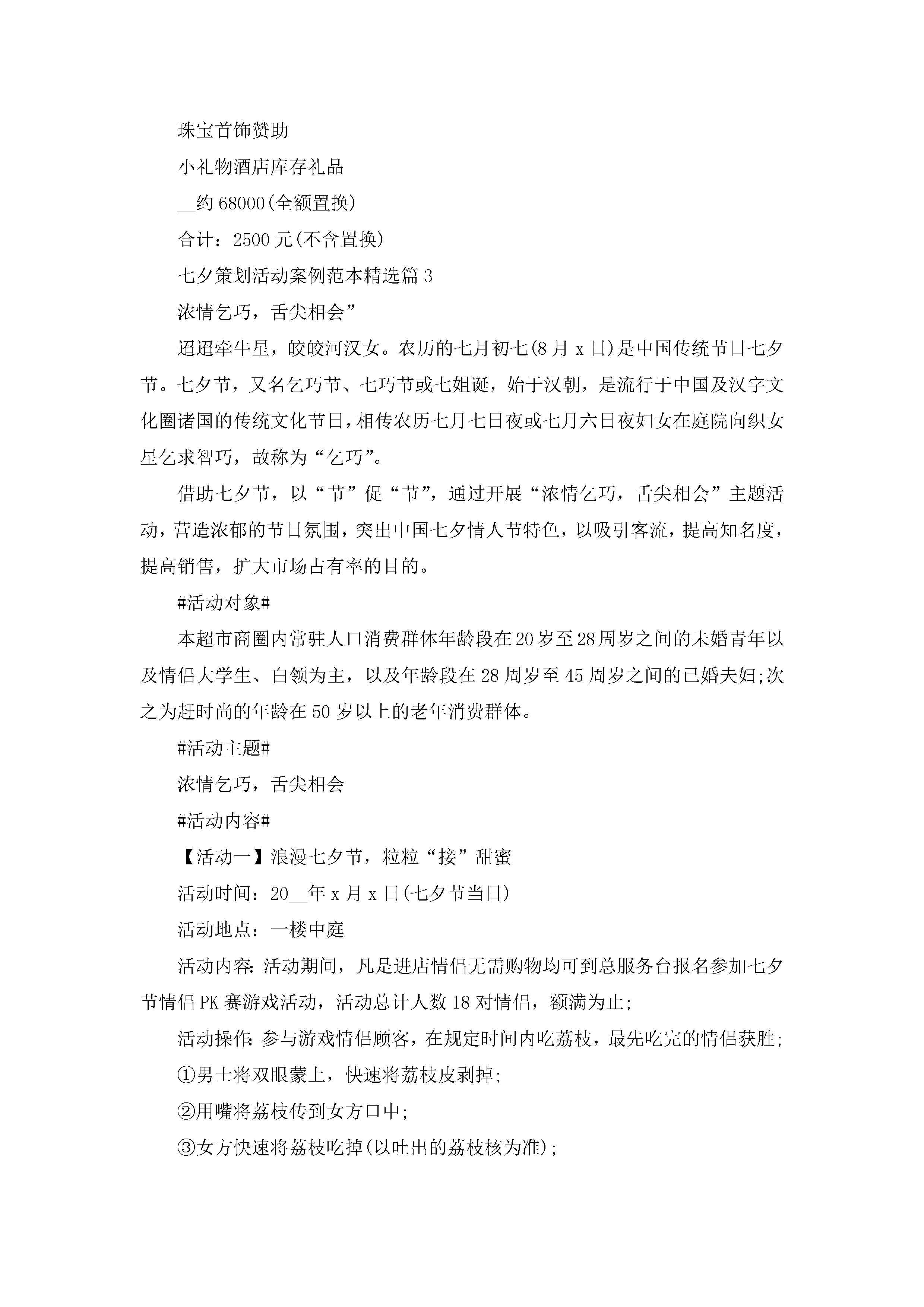 七夕策划活动案例范本5篇(精选)jugei3月23日 01:54发布关注254 七夕策划活动案例范本5篇(精选)此内容为付费资源,请付费后查看¥10.9 单篇文档限时特惠¥15个人会员开通企业会员开通立即下载无需登陆!可直接快捷下载单个模板付费资源© 版权声明THE ENDWord模板# 实用文档# 策划书# 工作文档# 活动策划 如有问题,可点击最底部“联系我们”联系客服 分享QQ空间微博QQ好友海报分享复制链接收藏