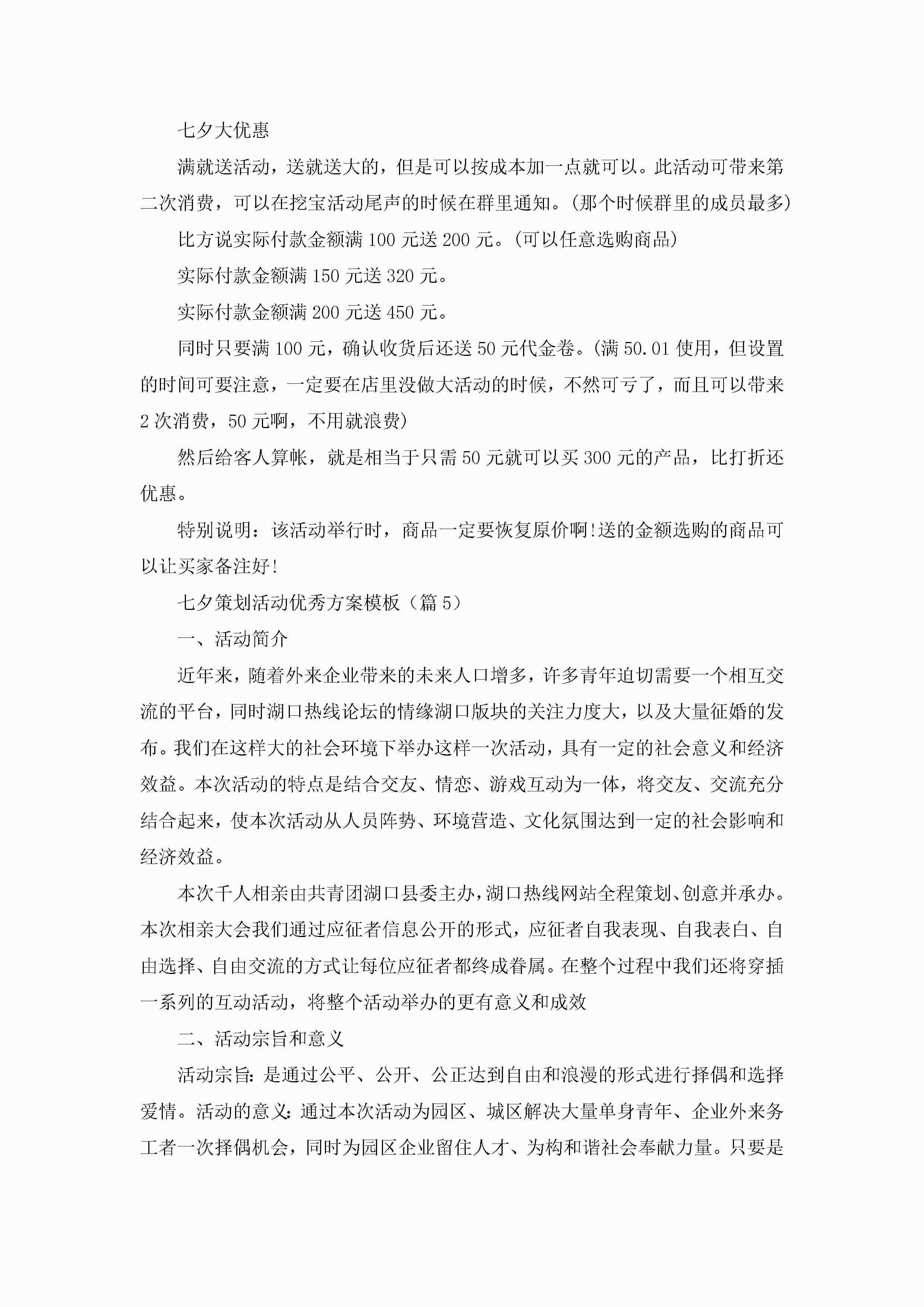 七夕策划活动优秀方案模板5篇(实用)jugei3月23日 01:54发布关注263 七夕策划活动优秀方案模板5篇(实用)此内容为付费资源,请付费后查看¥10.9 单篇文档限时特惠¥15个人会员开通企业会员开通立即下载无需登陆!可直接快捷下载单个模板付费资源© 版权声明THE ENDWord模板# 实用文档# 策划书# 工作文档# 活动策划 如有问题,可点击最底部“联系我们”联系客服 分享QQ空间微博QQ好友海报分享复制链接收藏
