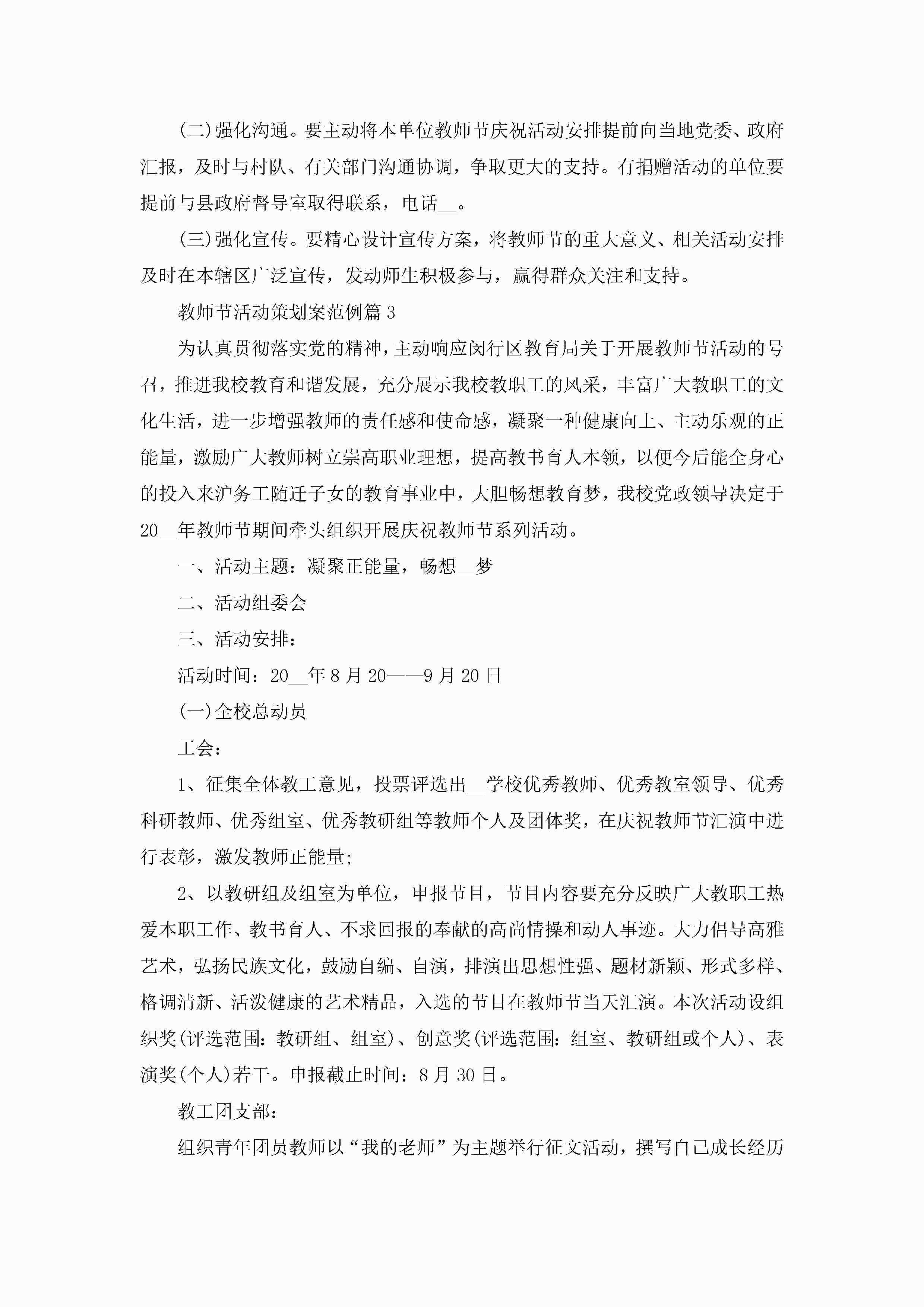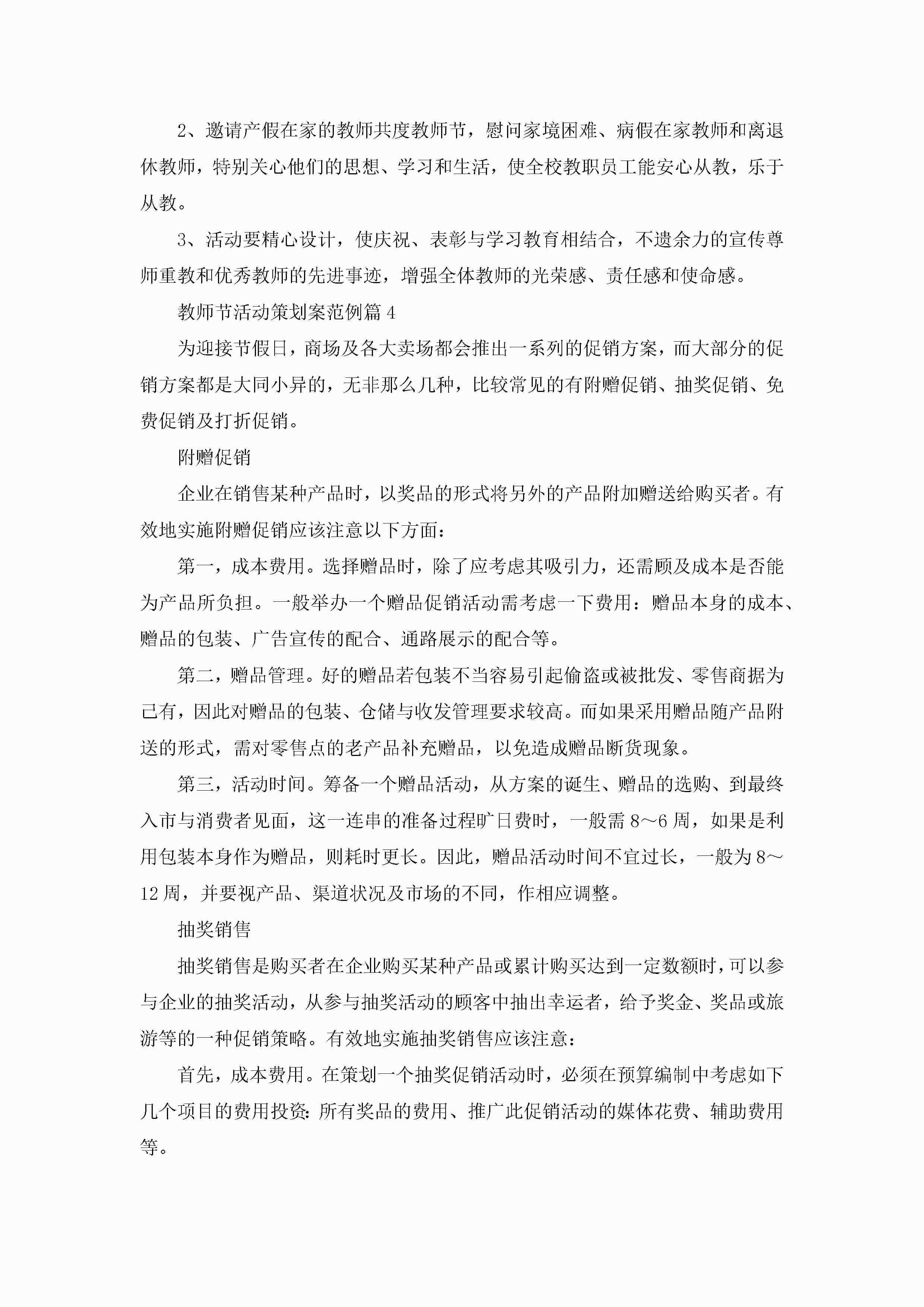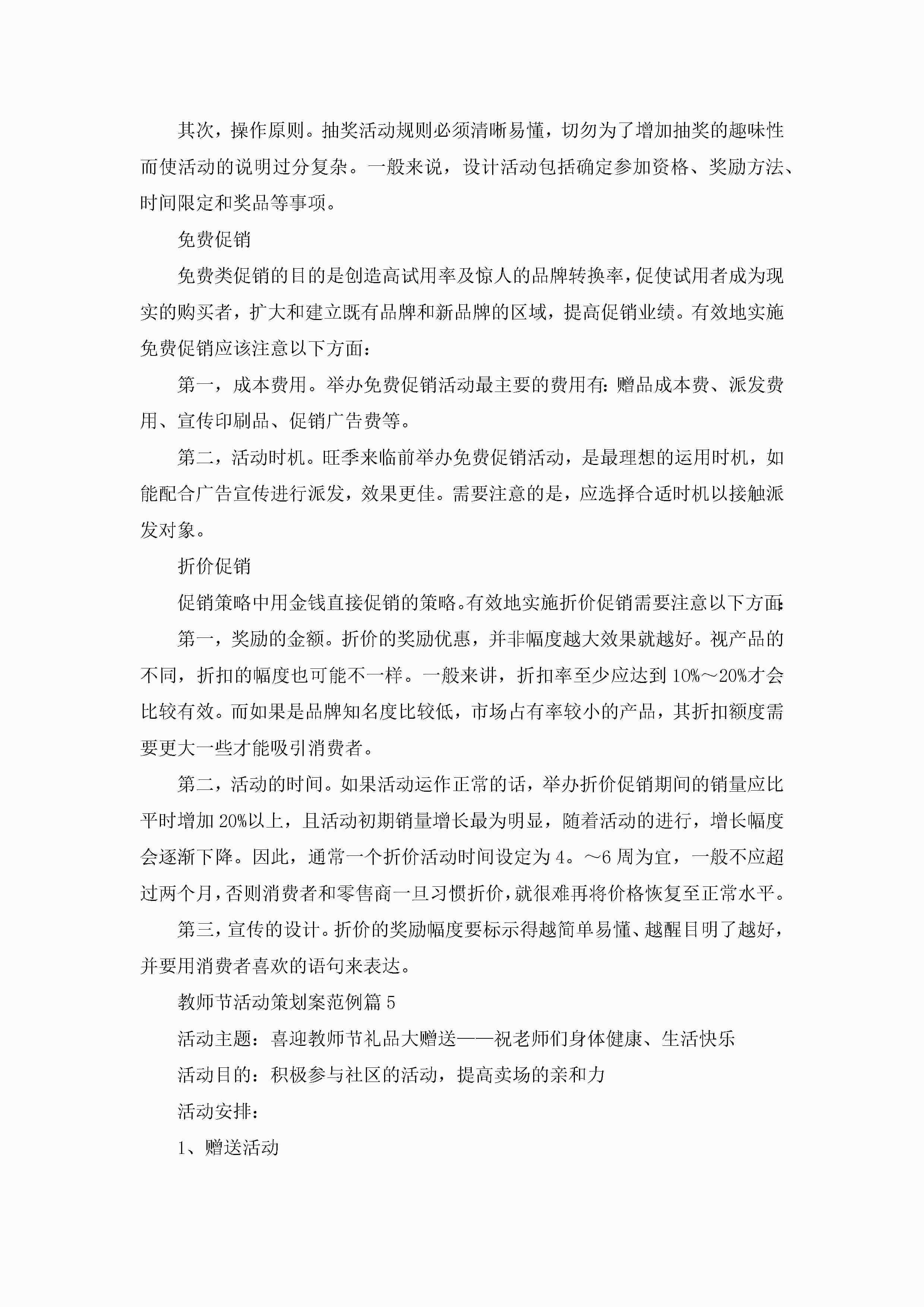 教师节活动策划案范例5篇(实用)jugei3月23日 01:54发布关注227 教师节活动策划案范例5篇(实用)此内容为付费资源,请付费后查看¥10.9 单篇文档限时特惠¥15个人会员开通企业会员开通立即下载无需登陆!可直接快捷下载单个模板付费资源© 版权声明THE ENDWord模板# 实用文档# 策划书# 活动策划# 教师节活动策划案范例 如有问题,可点击最底部“联系我们”联系客服 分享QQ空间微博QQ好友海报分享复制链接收藏