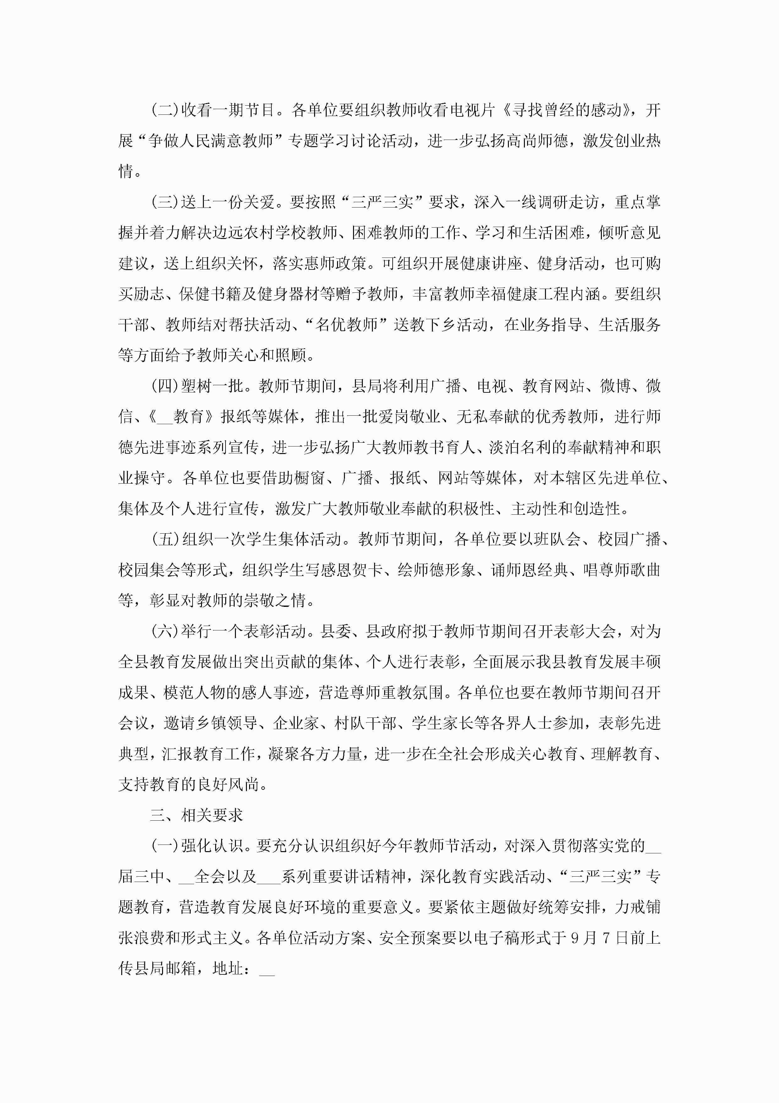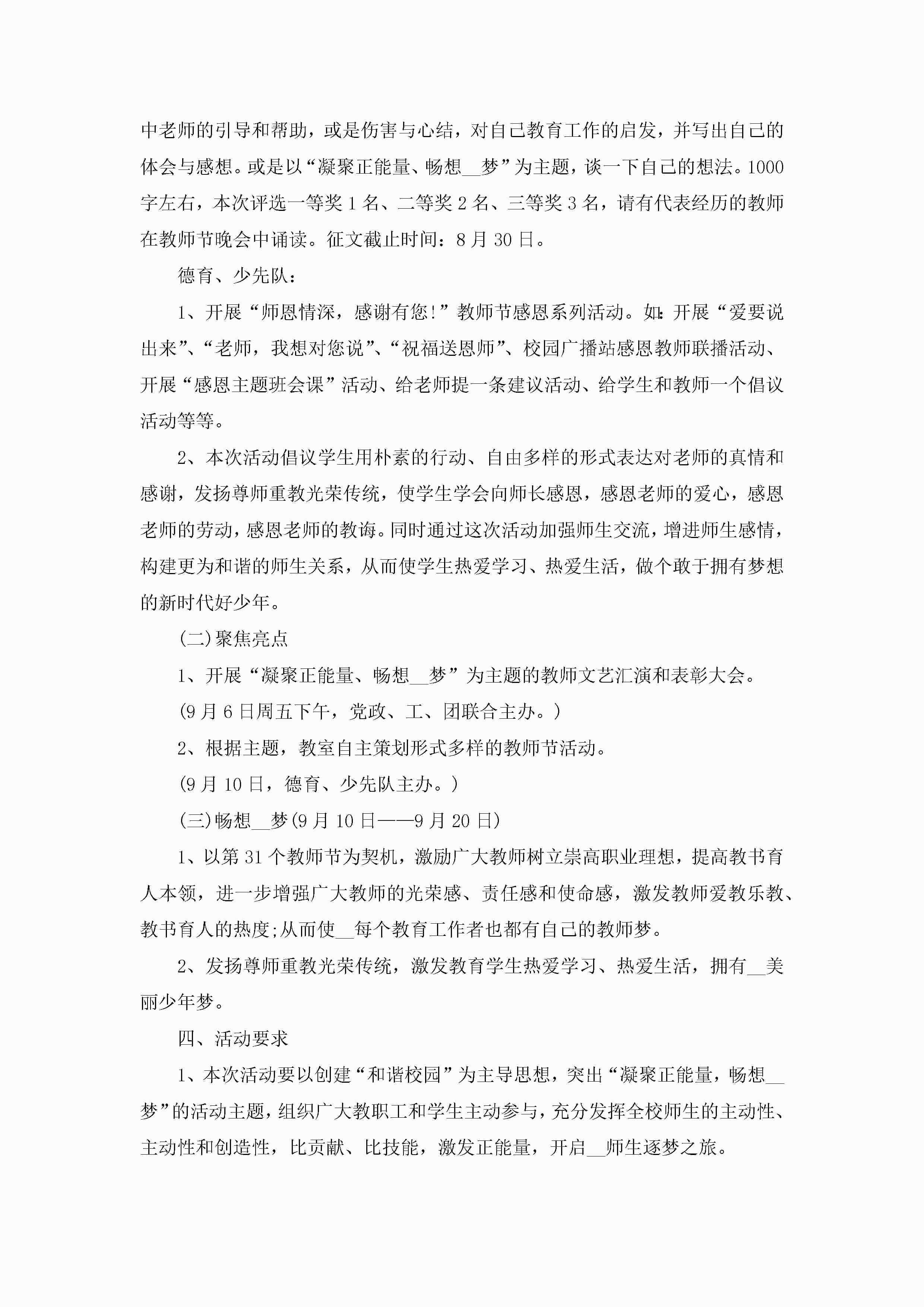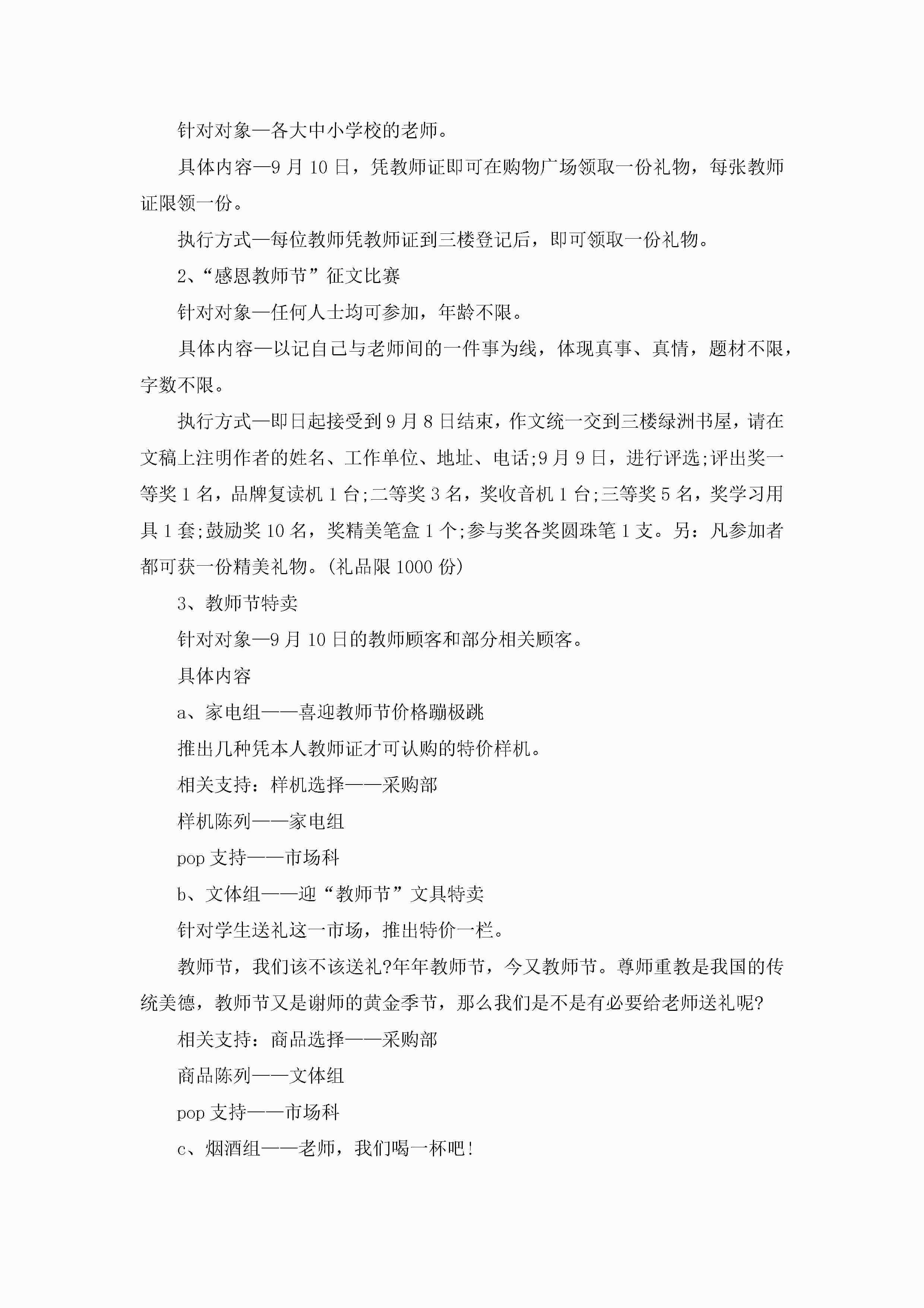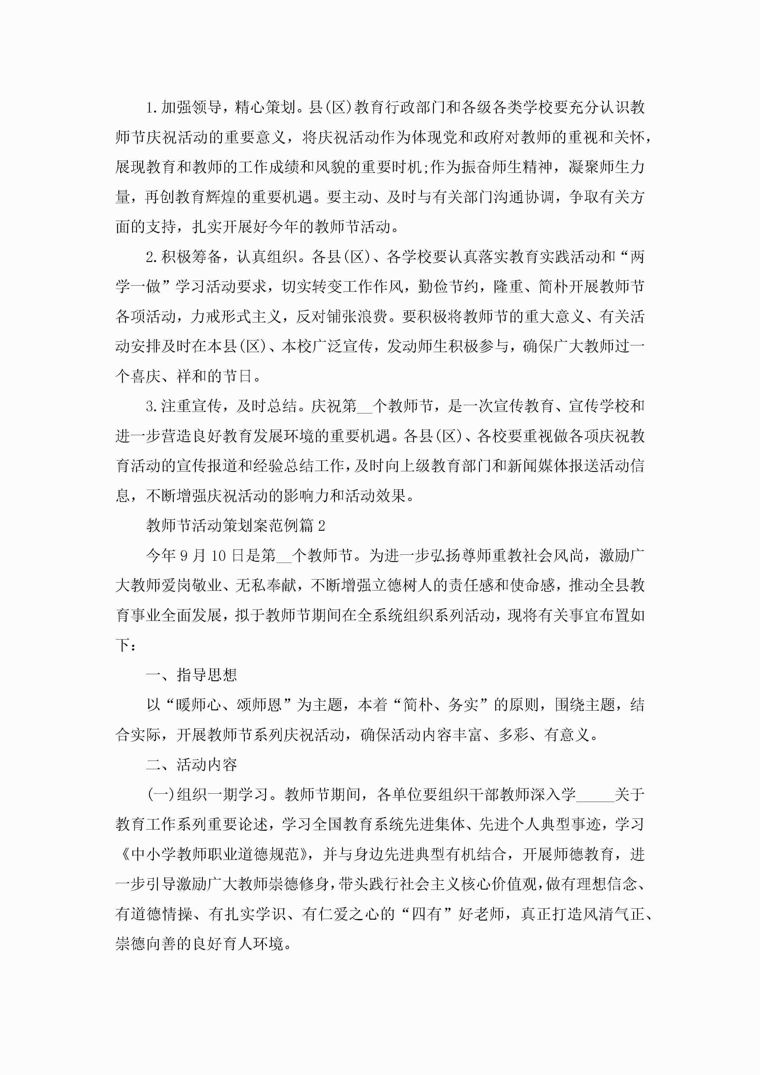 教师节活动策划案范例5篇(实用)jugei3月23日 01:54发布关注227 教师节活动策划案范例5篇(实用)此内容为付费资源,请付费后查看¥10.9 单篇文档限时特惠¥15个人会员开通企业会员开通立即下载无需登陆!可直接快捷下载单个模板付费资源© 版权声明THE ENDWord模板# 实用文档# 策划书# 活动策划# 教师节活动策划案范例 如有问题,可点击最底部“联系我们”联系客服 分享QQ空间微博QQ好友海报分享复制链接收藏