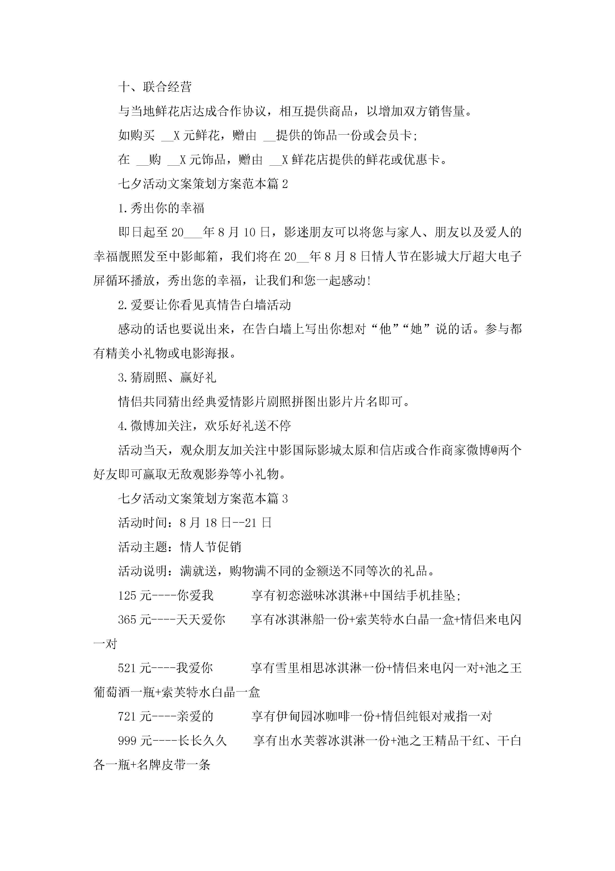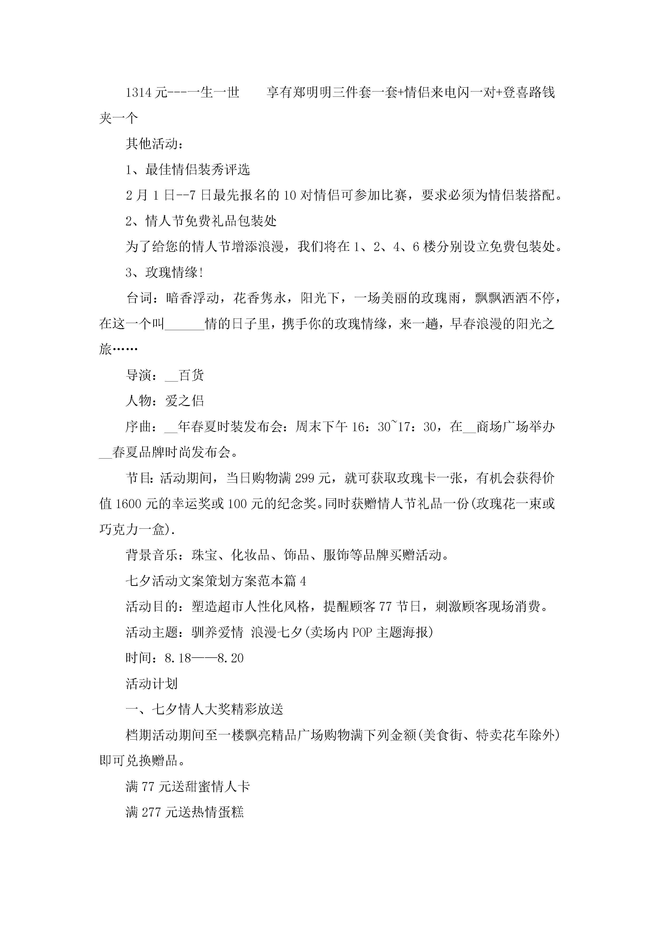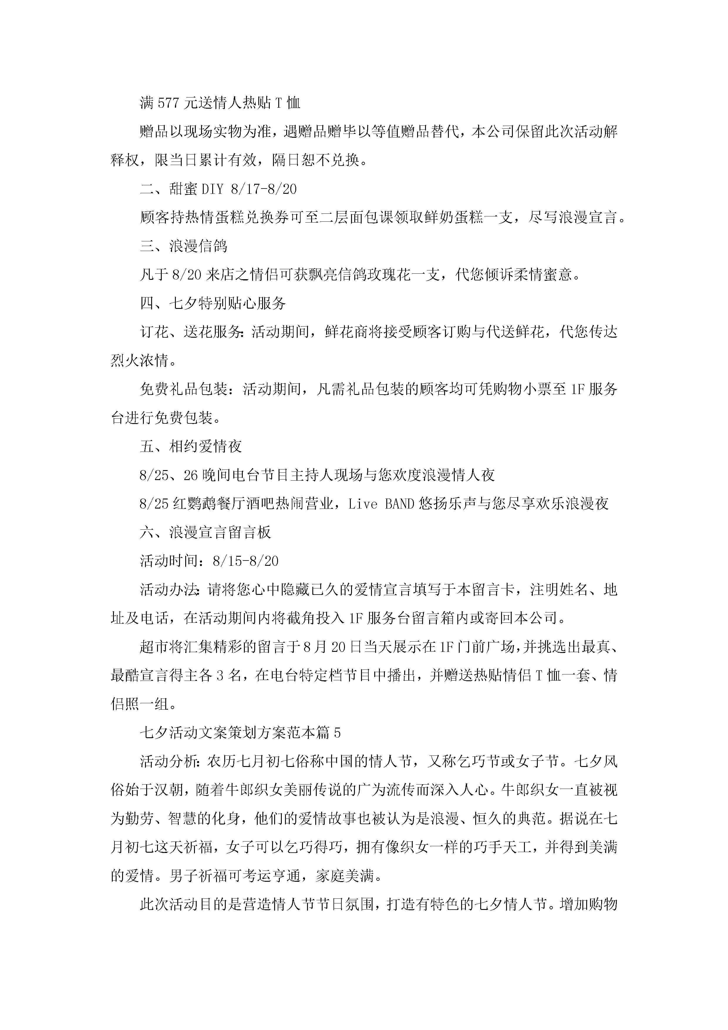 七夕活动文案策划方案范本5篇jugei3月23日 01:54发布关注197 七夕活动文案策划方案范本5篇此内容为付费资源,请付费后查看¥10.9 单篇文档限时特惠¥15个人会员开通企业会员开通立即下载无需登陆!可直接快捷下载单个模板付费资源© 版权声明THE ENDWord模板# 实用文档# 策划书# 活动策划# 七夕活动文案策划方案 如有问题,可点击最底部“联系我们”联系客服 分享QQ空间微博QQ好友海报分享复制链接收藏