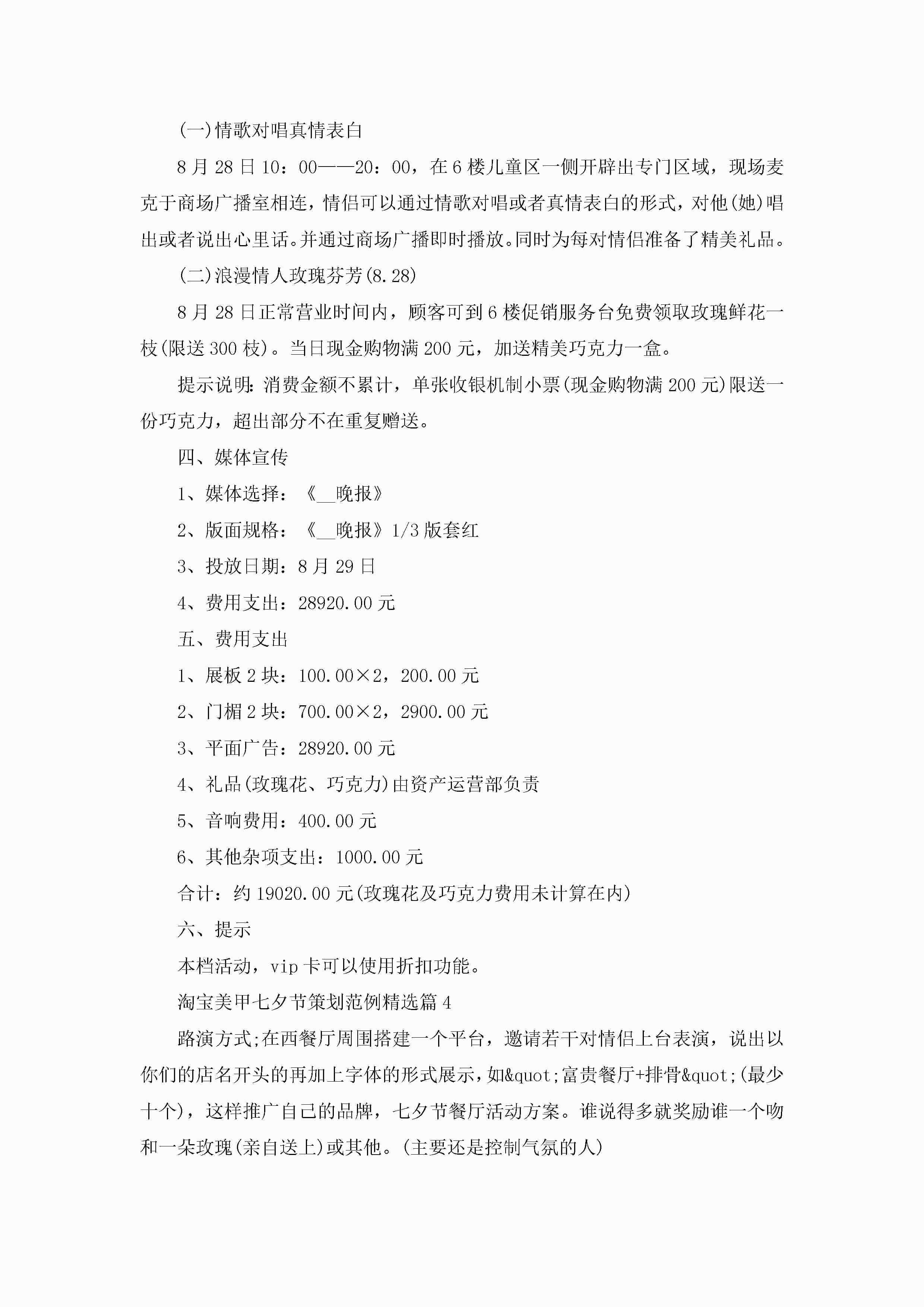 淘宝美甲七夕节策划范例5篇(精选)jugei3月23日 01:54发布关注206 淘宝美甲七夕节策划范例5篇(精选)此内容为付费资源,请付费后查看¥10.9 单篇文档限时特惠¥15个人会员开通企业会员开通立即下载无需登陆!可直接快捷下载单个模板付费资源© 版权声明THE ENDWord模板# 实用文档# 策划书# 活动策划# 淘宝美甲七夕节策划范例 如有问题,可点击最底部“联系我们”联系客服 分享QQ空间微博QQ好友海报分享复制链接收藏