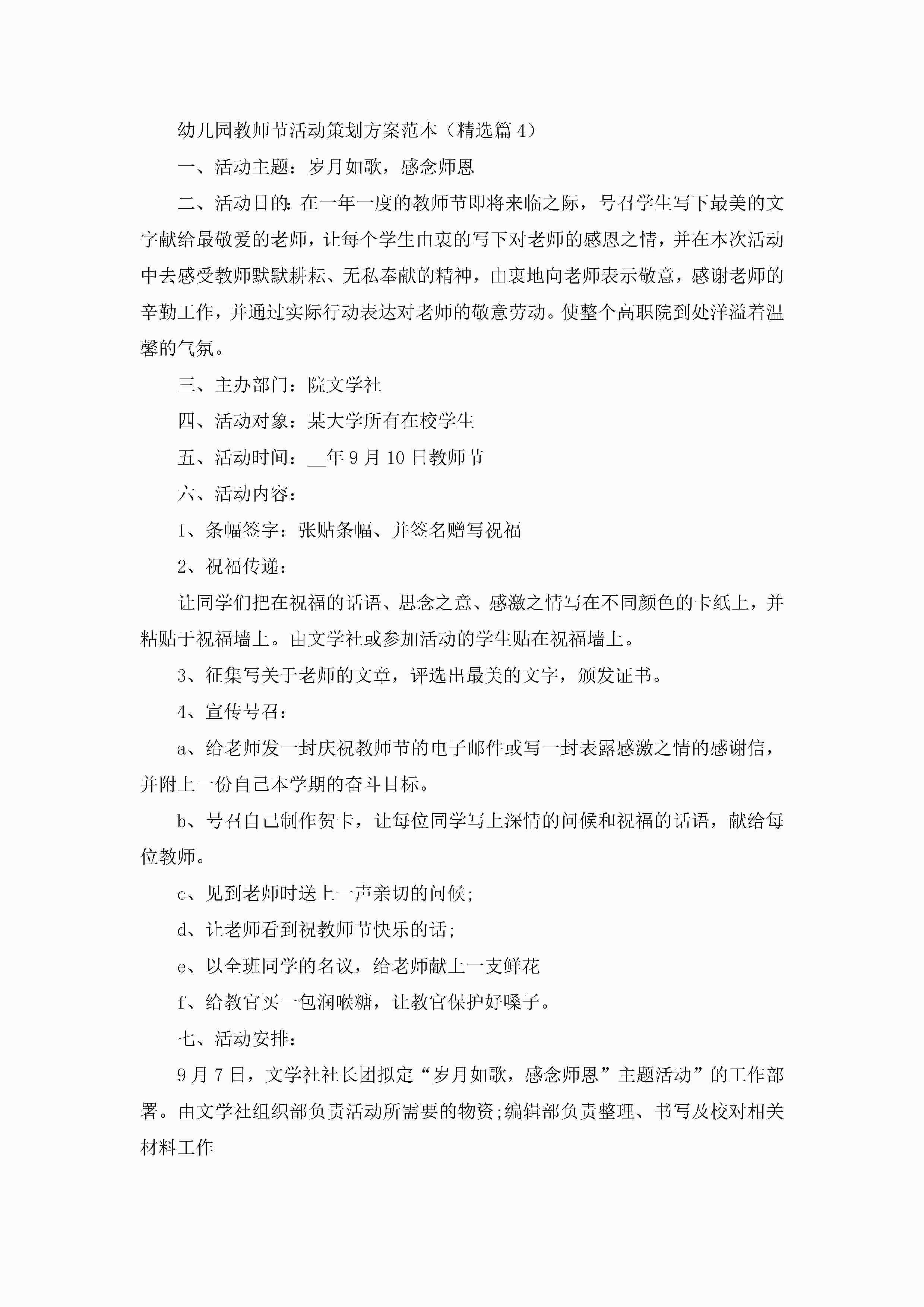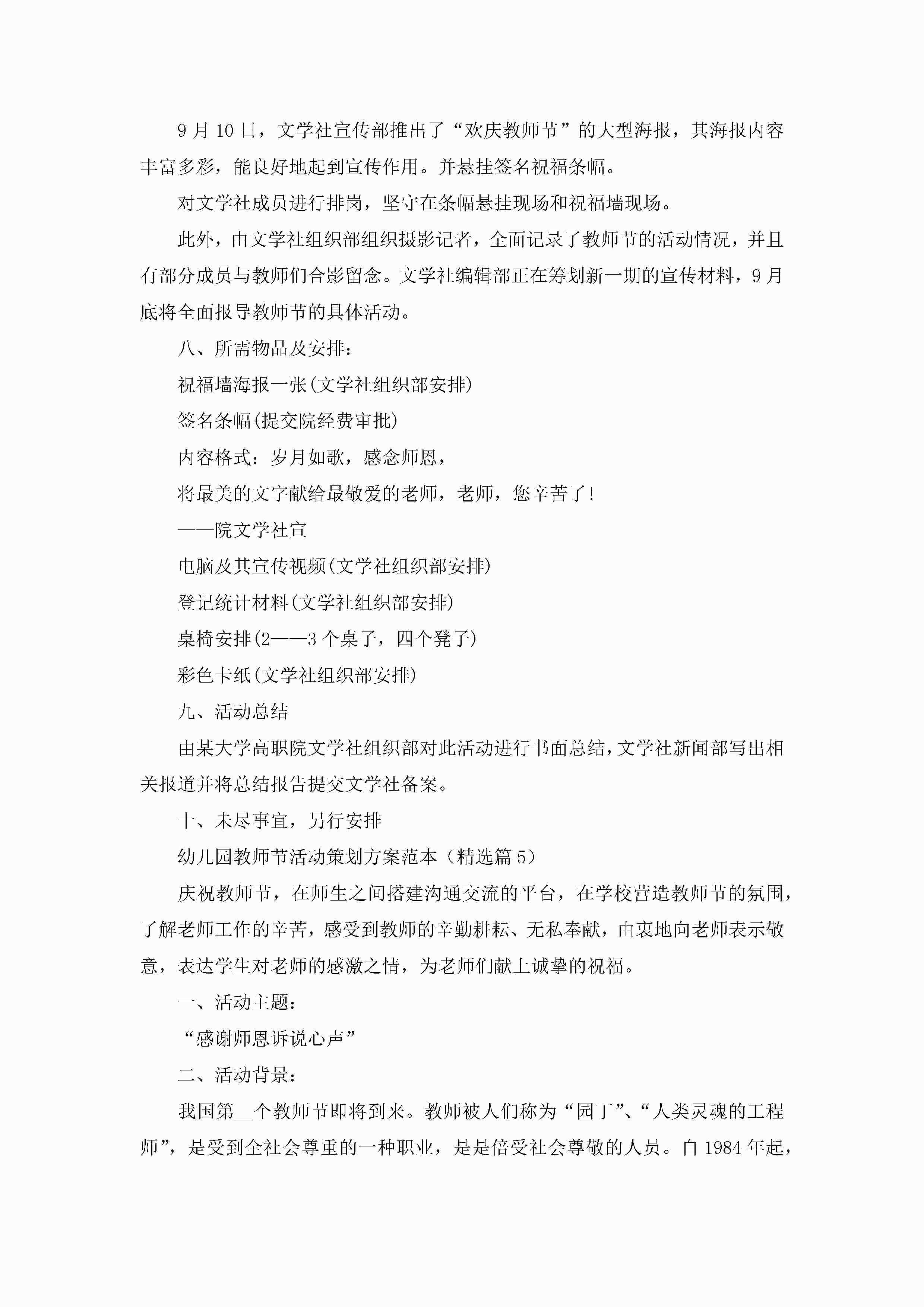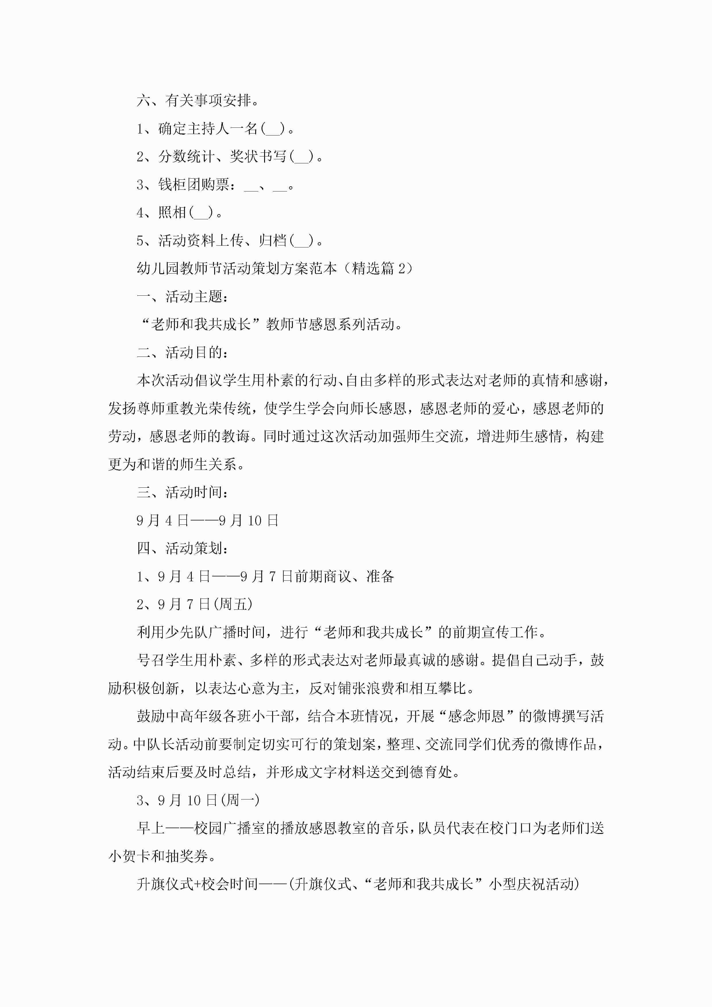 幼儿园教师节活动策划方案范本5篇jugei3月23日 01:54发布关注503 幼儿园教师节活动策划方案范本5篇此内容为付费资源,请付费后查看¥10.9 单篇文档限时特惠¥15个人会员开通企业会员开通立即下载无需登陆!可直接快捷下载单个模板付费资源© 版权声明THE ENDWord模板# 实用文档# 策划书# 工作文档# 活动策划 如有问题,可点击最底部“联系我们”联系客服 分享QQ空间微博QQ好友海报分享复制链接收藏