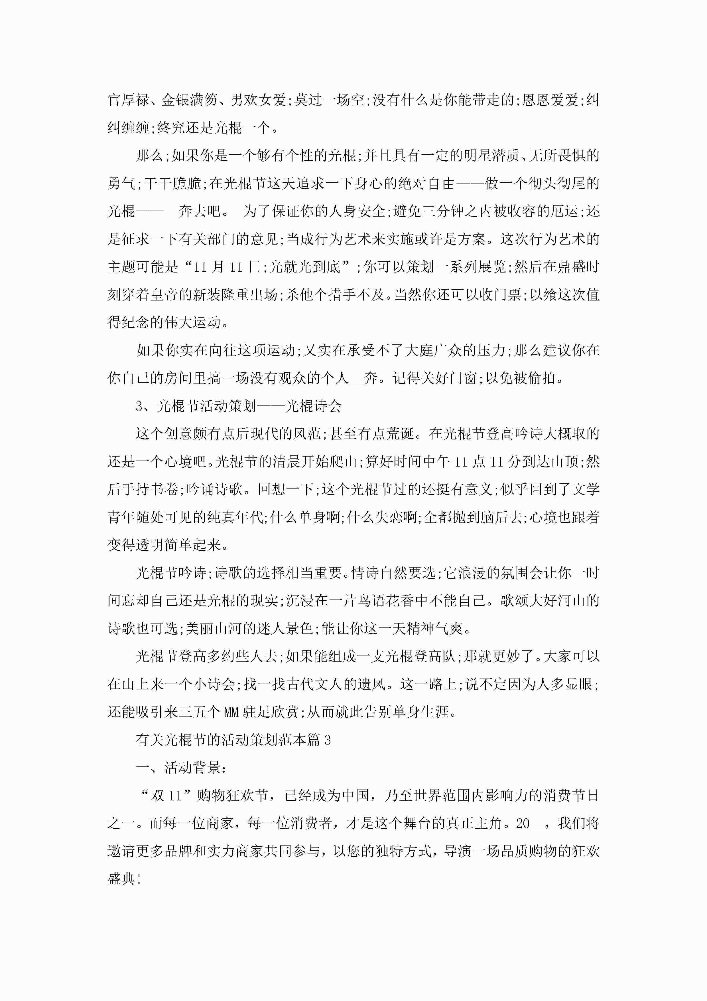 有关光棍节的活动策划范本5篇jugei3月23日 01:55发布关注207 有关光棍节的活动策划范本5篇此内容为付费资源,请付费后查看¥10.9 单篇文档限时特惠¥15个人会员开通企业会员开通立即下载无需登陆!可直接快捷下载单个模板付费资源© 版权声明THE ENDWord模板# 实用文档# 策划书# 工作文档# 活动策划 如有问题,可点击最底部“联系我们”联系客服 分享QQ空间微博QQ好友海报分享复制链接收藏