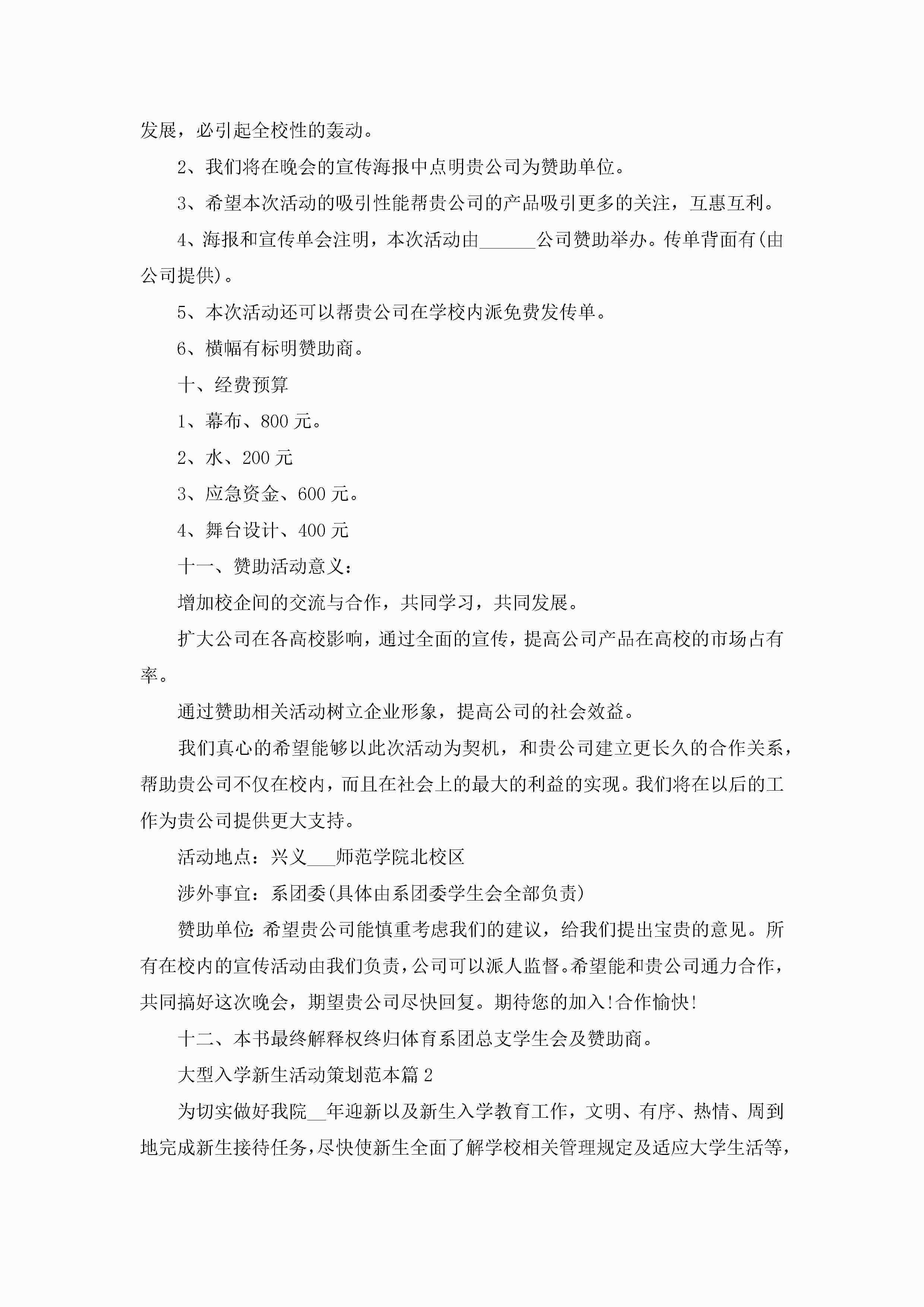大型入学新生活动策划范本5篇jugei3月23日 01:55发布关注263 大型入学新生活动策划范本5篇此内容为付费资源,请付费后查看¥10.9 单篇文档限时特惠¥15个人会员开通企业会员开通立即下载无需登陆!可直接快捷下载单个模板付费资源© 版权声明THE ENDWord模板# 实用文档# 策划书# 活动策划# 大型入学新生活动策划 如有问题,可点击最底部“联系我们”联系客服 分享QQ空间微博QQ好友海报分享复制链接收藏