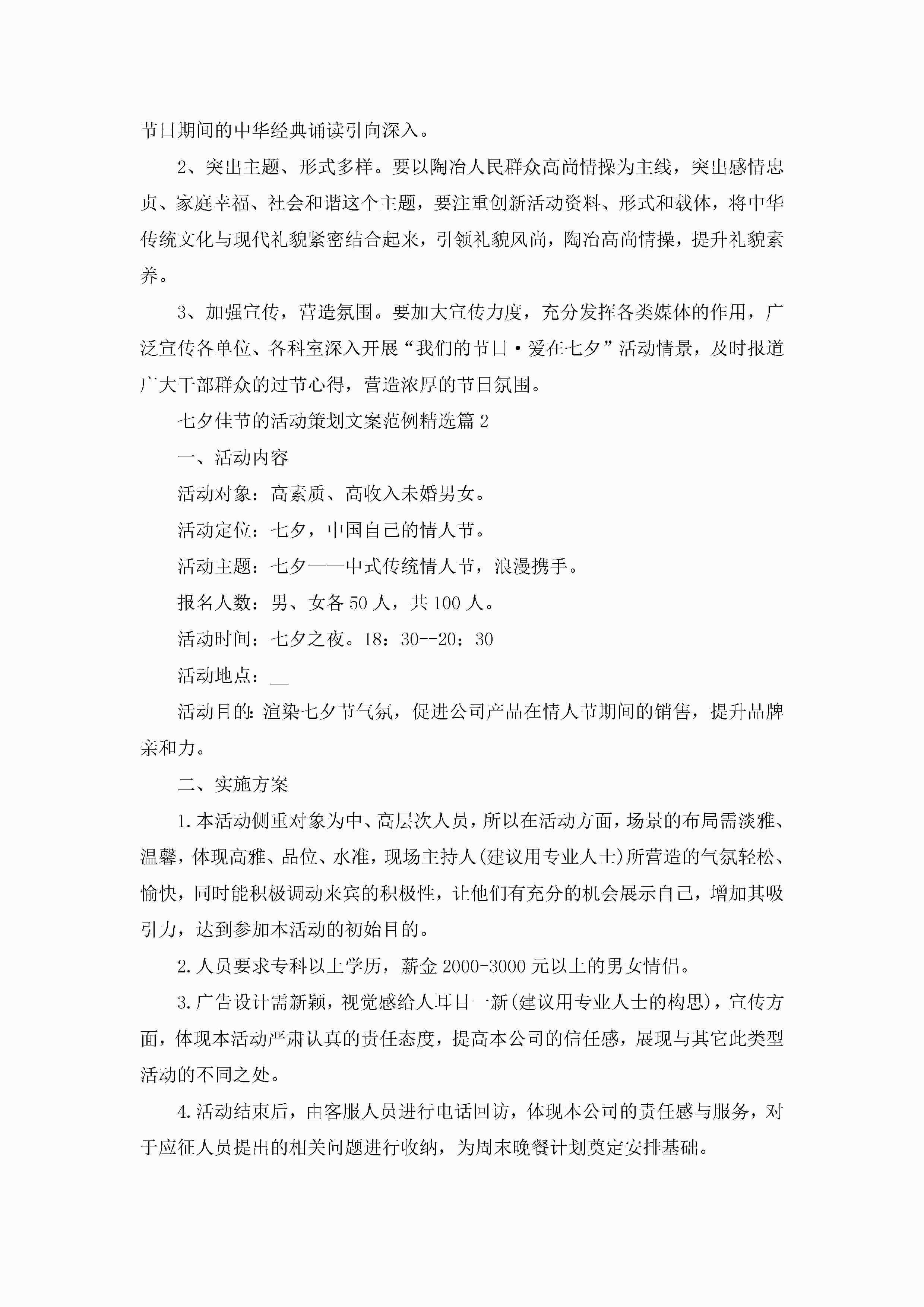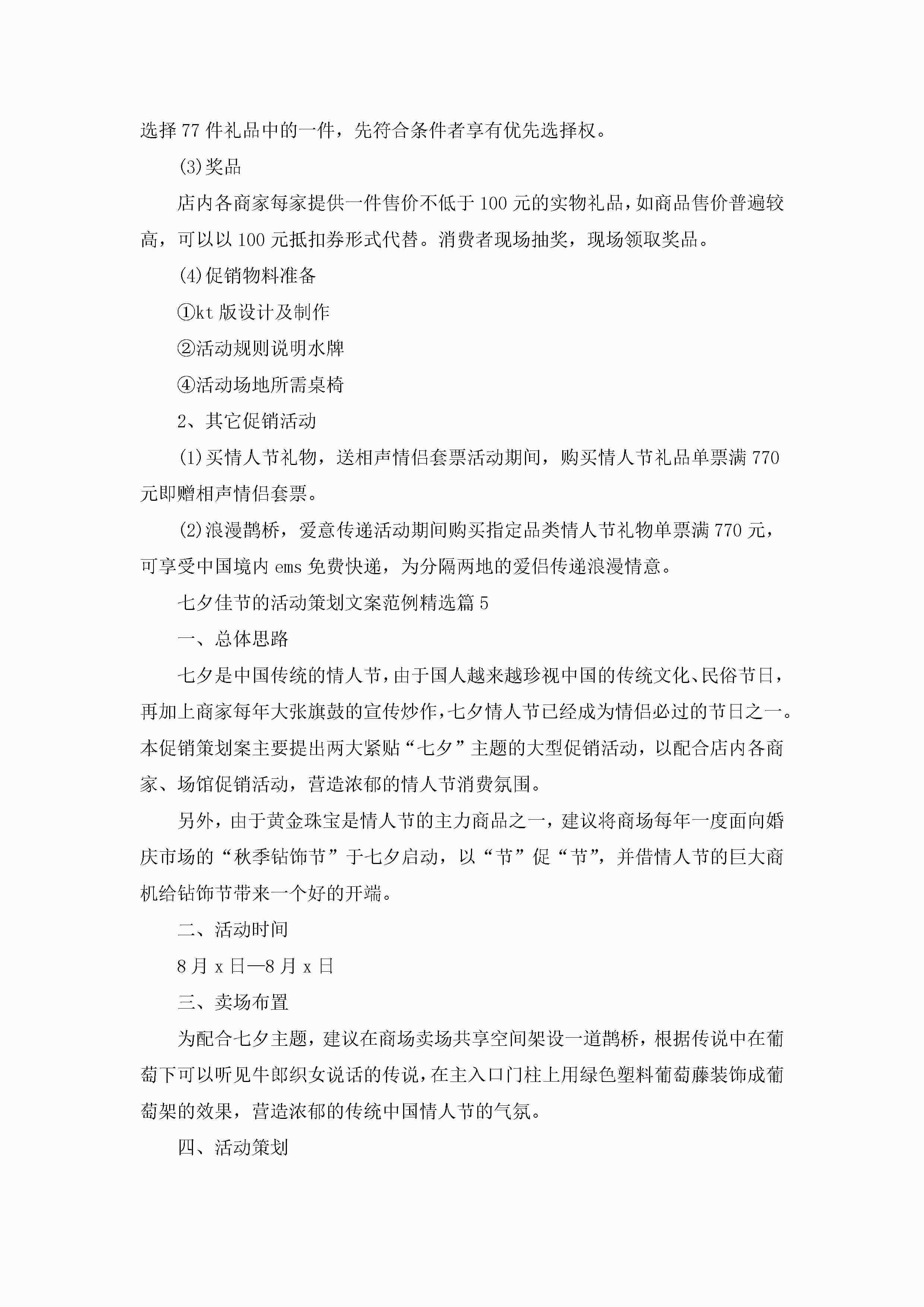七夕佳节的活动策划文案范例5篇jugei3月23日 01:55发布关注205 七夕佳节的活动策划文案范例5篇此内容为付费资源,请付费后查看¥10.9 单篇文档限时特惠¥15个人会员开通企业会员开通立即下载无需登陆!可直接快捷下载单个模板付费资源© 版权声明THE ENDWord模板# 实用文档# 策划书# 活动策划# 七夕佳节的活动策划文案范例 如有问题,可点击最底部“联系我们”联系客服 分享QQ空间微博QQ好友海报分享复制链接收藏