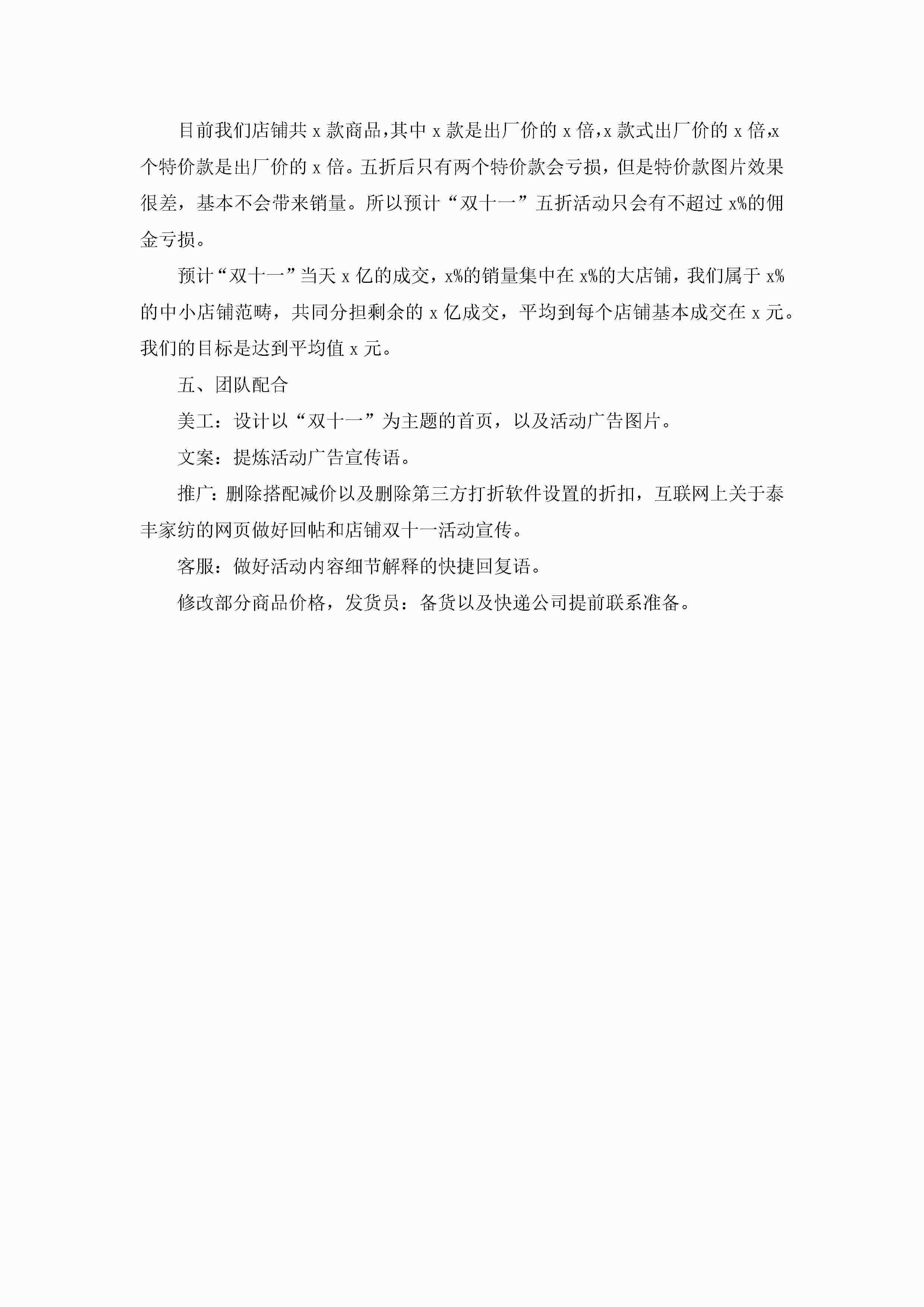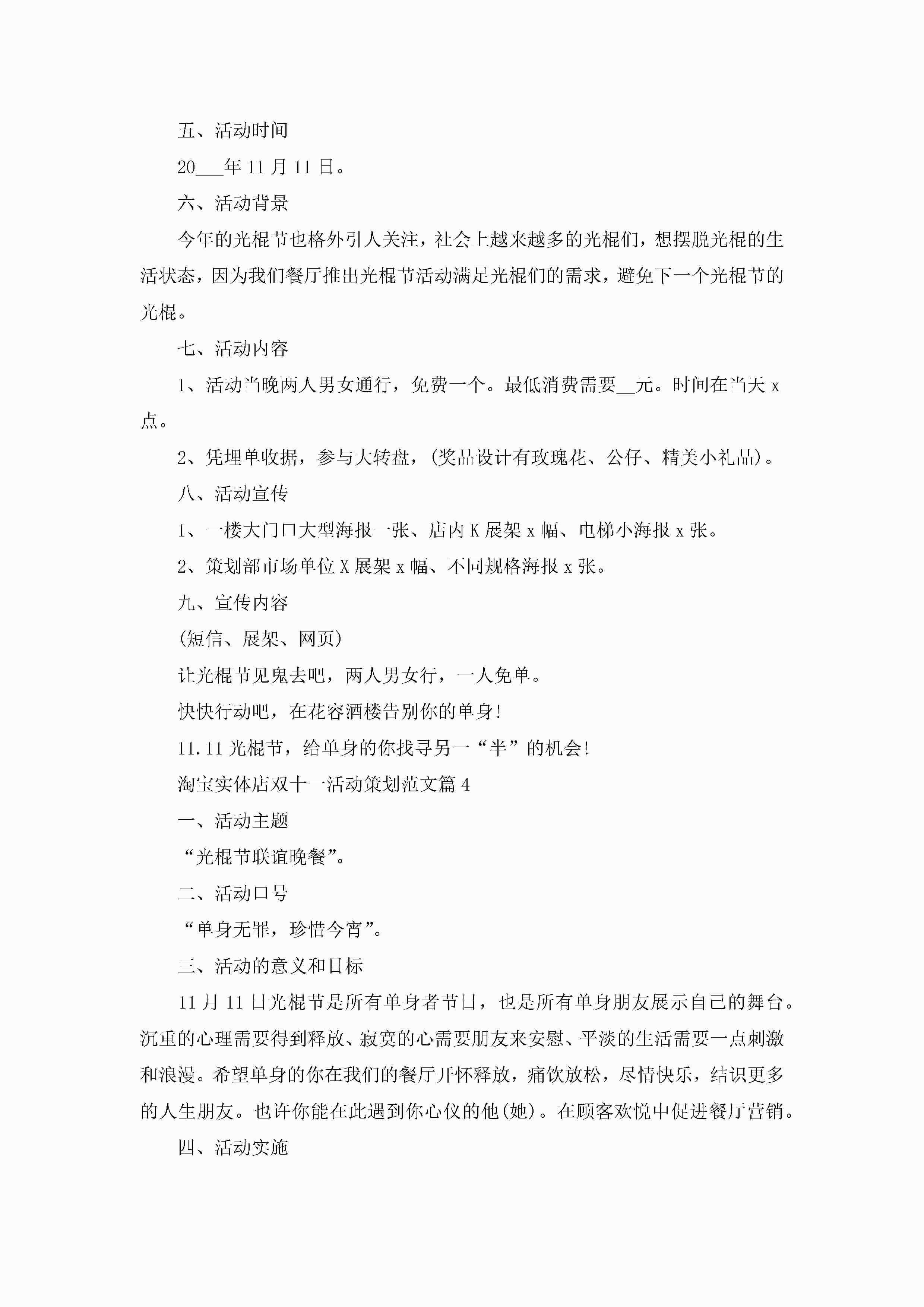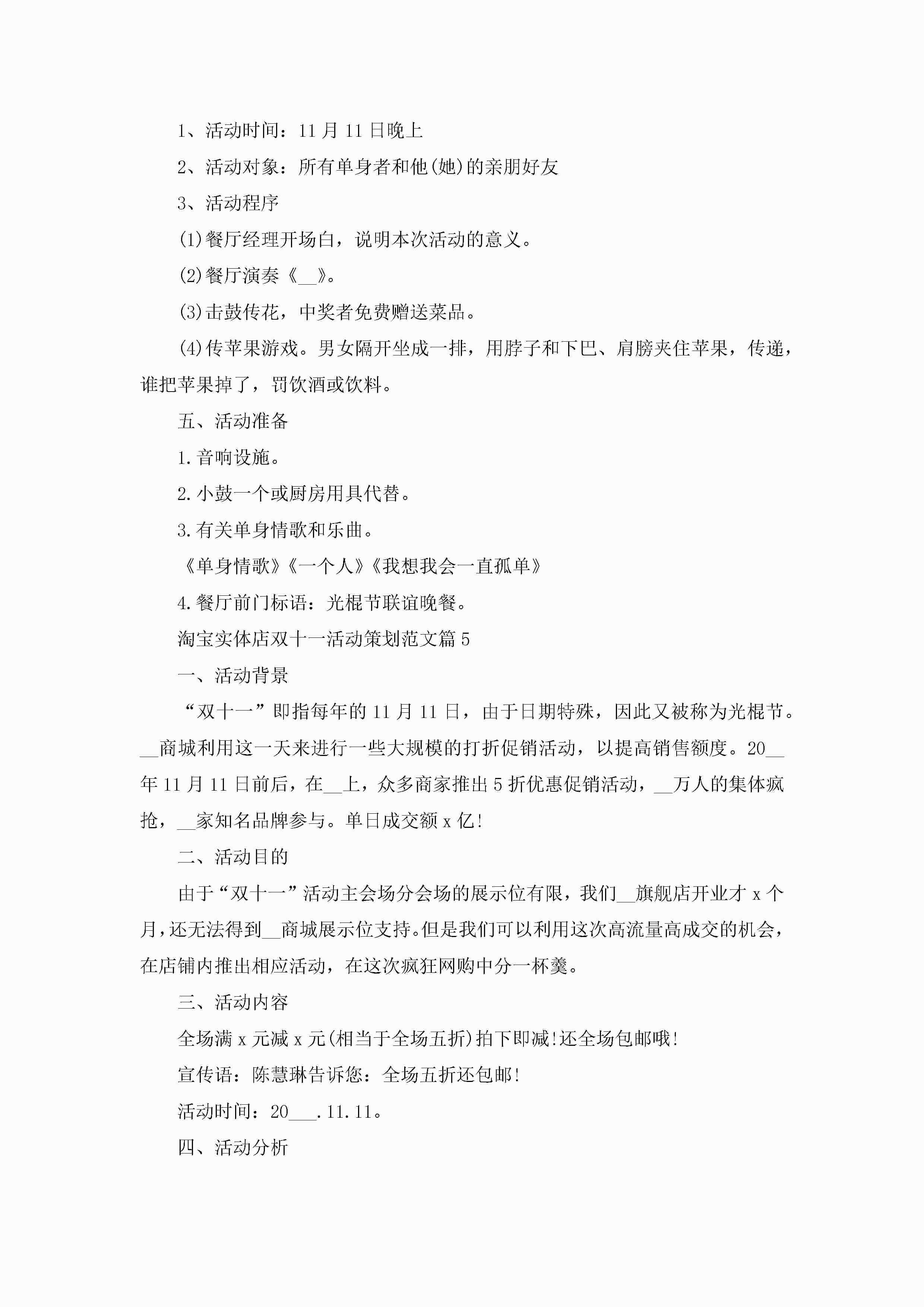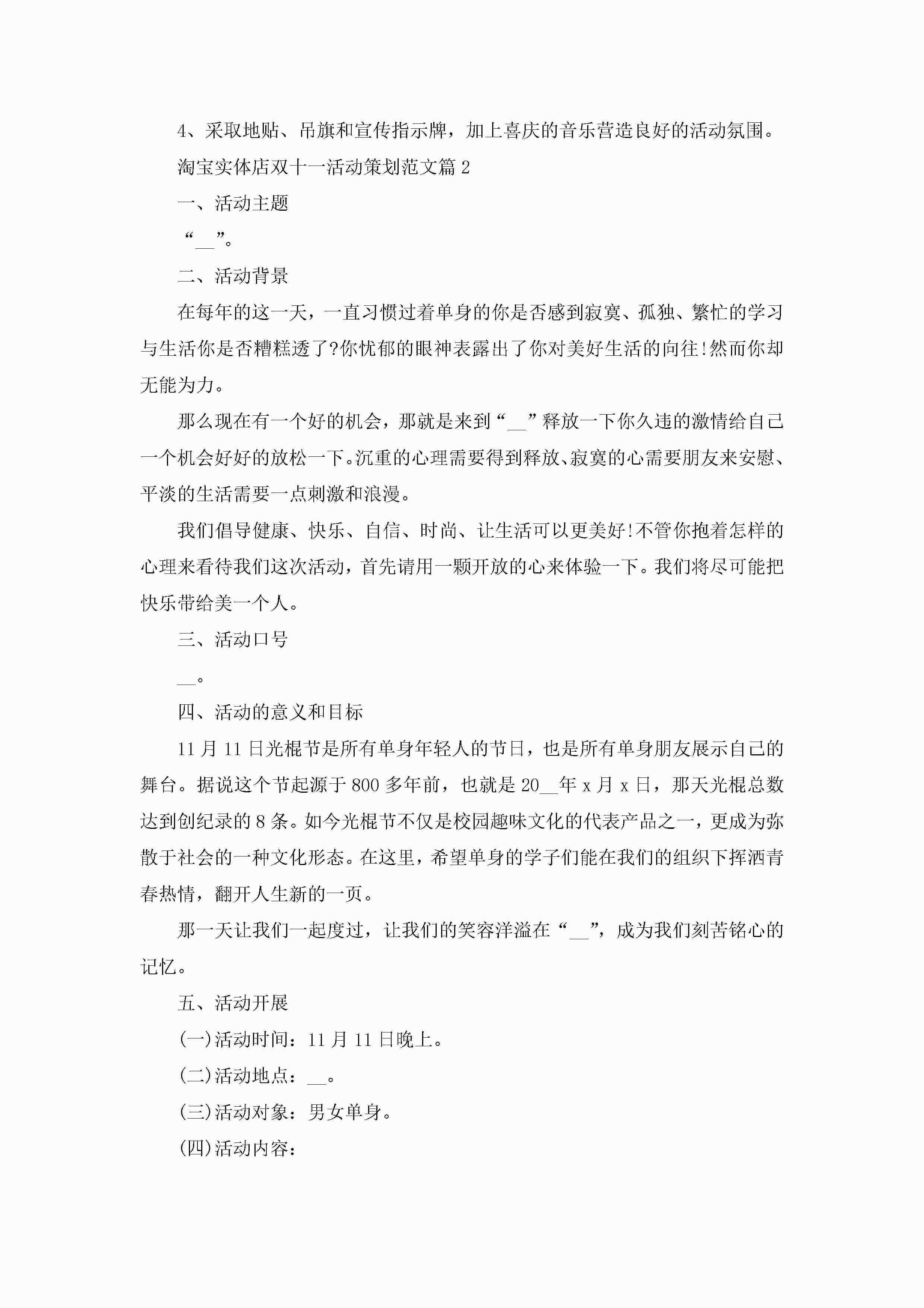 淘宝实体店双十一活动策划范文5篇jugei3月23日 01:55发布关注228 淘宝实体店双十一活动策划范文5篇此内容为付费资源,请付费后查看¥10.9 单篇文档限时特惠¥15个人会员开通企业会员开通立即下载无需登陆!可直接快捷下载单个模板付费资源© 版权声明THE ENDWord模板# 实用文档# 策划书# 活动策划# 淘宝实体店双十一活动策划 如有问题,可点击最底部“联系我们”联系客服 分享QQ空间微博QQ好友海报分享复制链接收藏