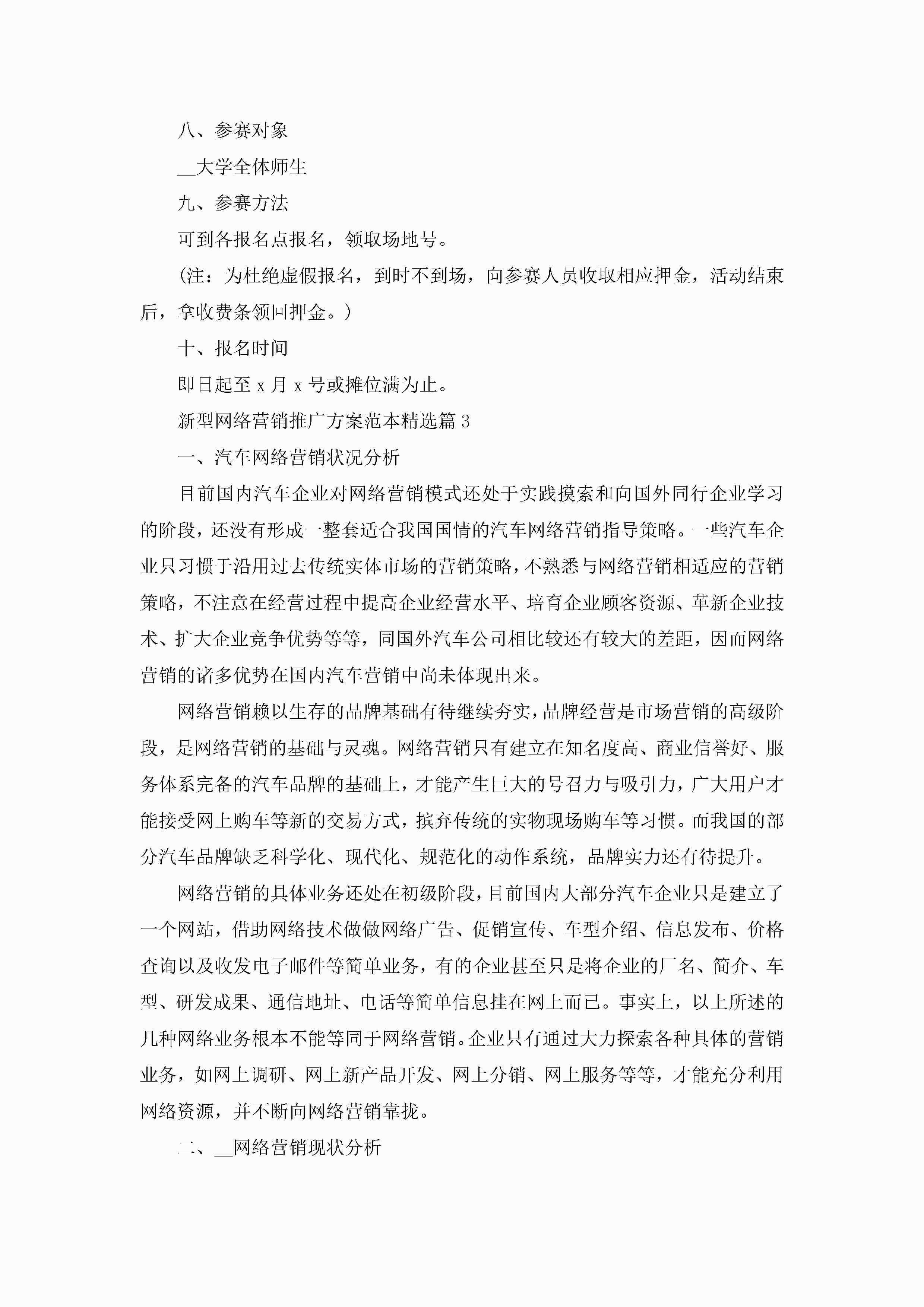 新型网络营销推广方案范本5篇jugei3月23日 01:55发布关注257 新型网络营销推广方案范本5篇此内容为付费资源,请付费后查看¥10.9 单篇文档限时特惠¥15个人会员开通企业会员开通立即下载无需登陆!可直接快捷下载单个模板付费资源© 版权声明THE ENDWord模板# 实用文档# 策划书# 工作文档# 活动策划 如有问题,可点击最底部“联系我们”联系客服 分享QQ空间微博QQ好友海报分享复制链接收藏