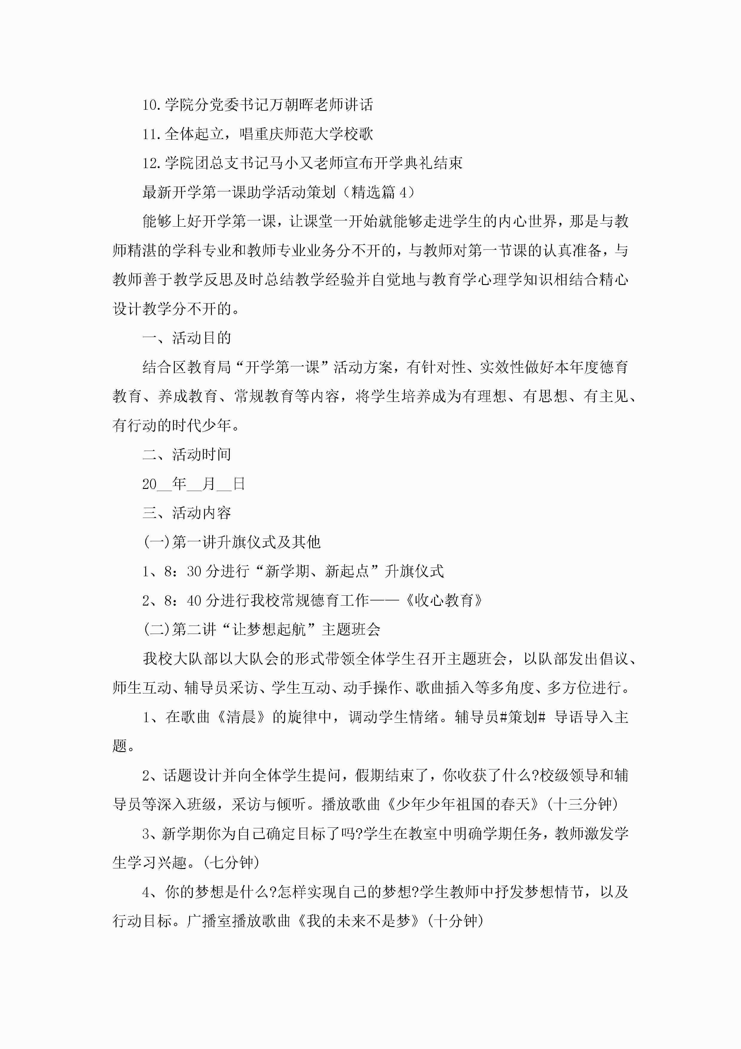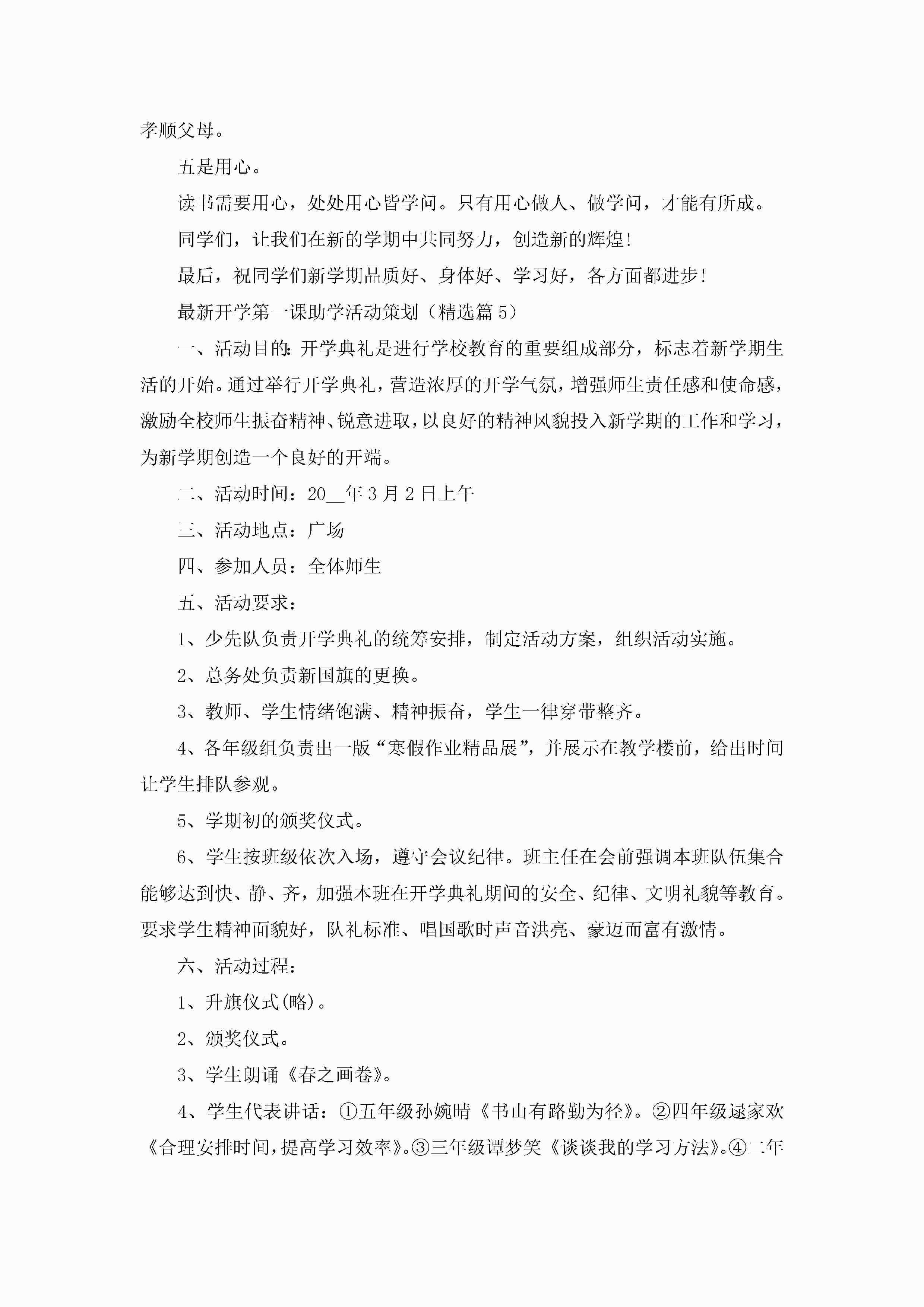 最新开学第一课助学活动策划5篇(精选)jugei3月23日 01:55发布关注462 最新开学第一课助学活动策划5篇(精选)此内容为付费资源,请付费后查看¥10.9 单篇文档限时特惠¥15个人会员开通企业会员开通立即下载无需登陆!可直接快捷下载单个模板付费资源© 版权声明THE ENDWord模板# 实用文档# 策划书# 活动策划# 开学第一课助学活动策划 如有问题,可点击最底部“联系我们”联系客服 分享QQ空间微博QQ好友海报分享复制链接收藏