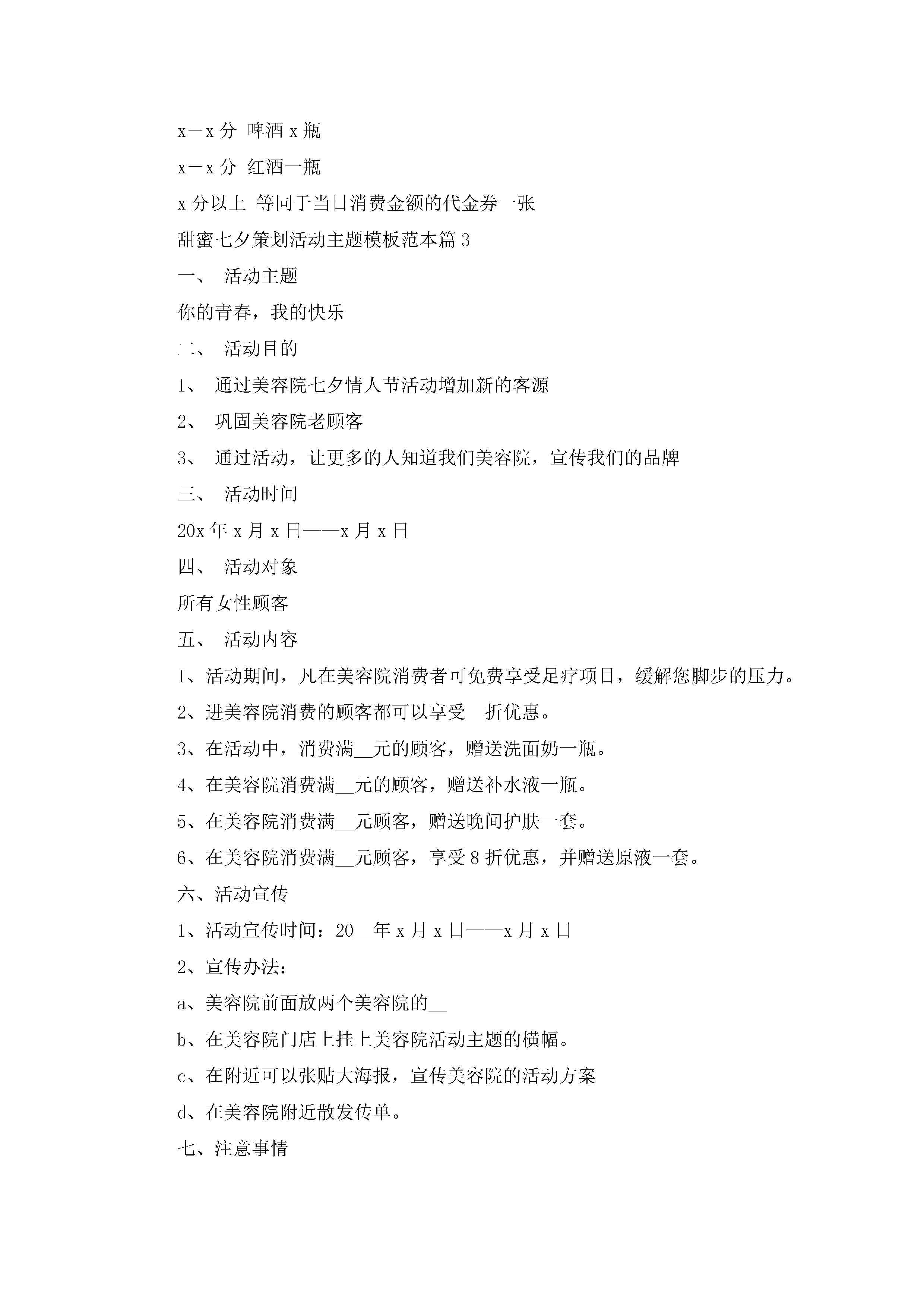 甜蜜七夕策划活动主题模板范本5篇(精选)jugei3月29日 00:26更新关注201 甜蜜七夕策划活动主题模板范本5篇(精选)此内容为付费资源,请付费后查看¥10.9 单篇文档限时特惠¥15个人会员开通企业会员开通立即下载无需登陆!可直接快捷下载单个模板付费资源© 版权声明THE ENDWord模板# 实用文档# 策划书# 工作文档# 活动策划 如有问题,可点击最底部“联系我们”联系客服 分享QQ空间微博QQ好友海报分享复制链接收藏