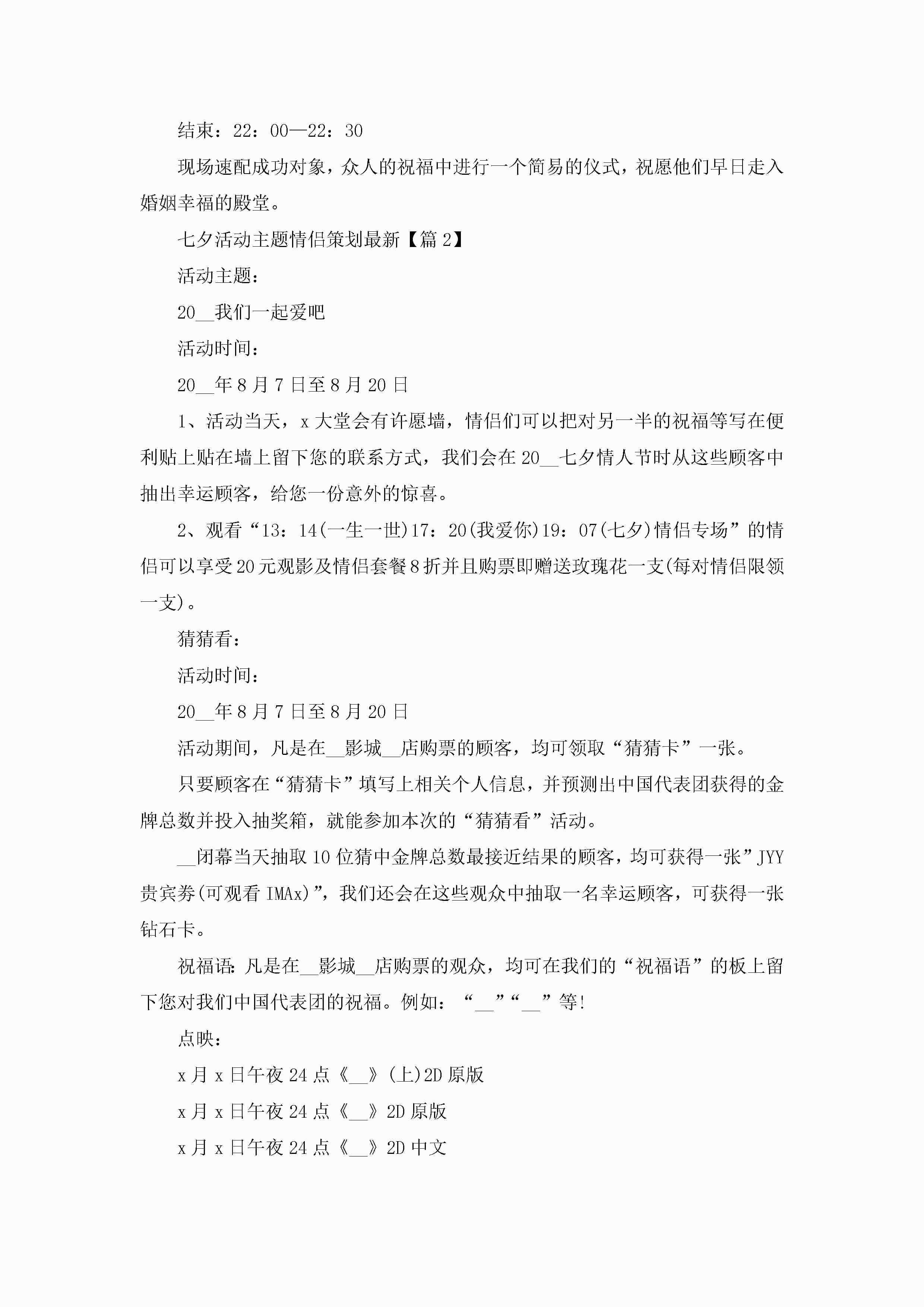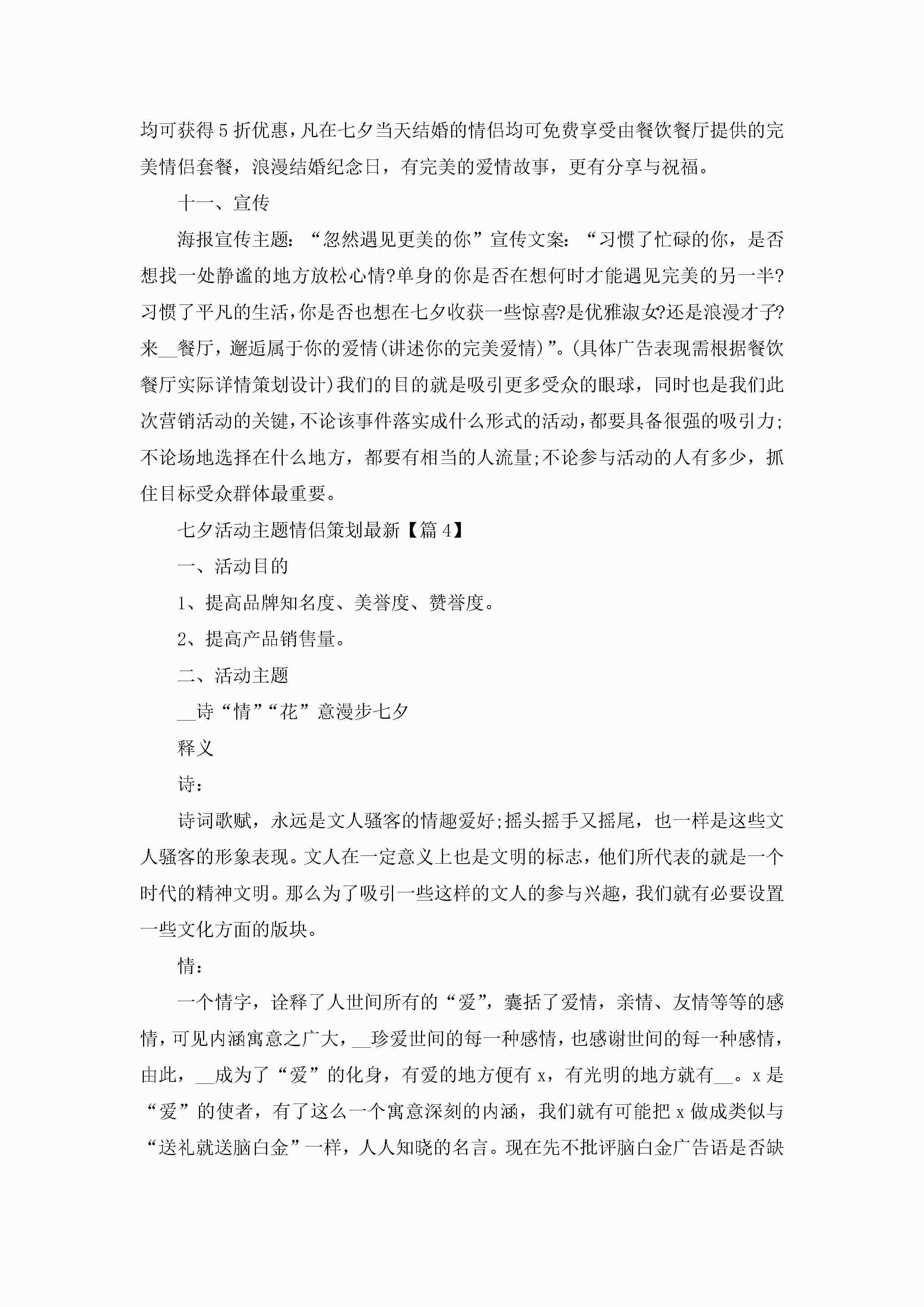 七夕活动主题情侣策划最新5篇jugei3月29日 00:26更新关注219 七夕活动主题情侣策划最新5篇此内容为付费资源,请付费后查看¥10.9 单篇文档限时特惠¥15个人会员开通企业会员开通立即下载无需登陆!可直接快捷下载单个模板付费资源© 版权声明THE ENDWord模板# 实用文档# 策划书# 工作文档# 活动策划# 七夕活动主题情侣策划 如有问题,可点击最底部“联系我们”联系客服 分享QQ空间微博QQ好友海报分享复制链接收藏