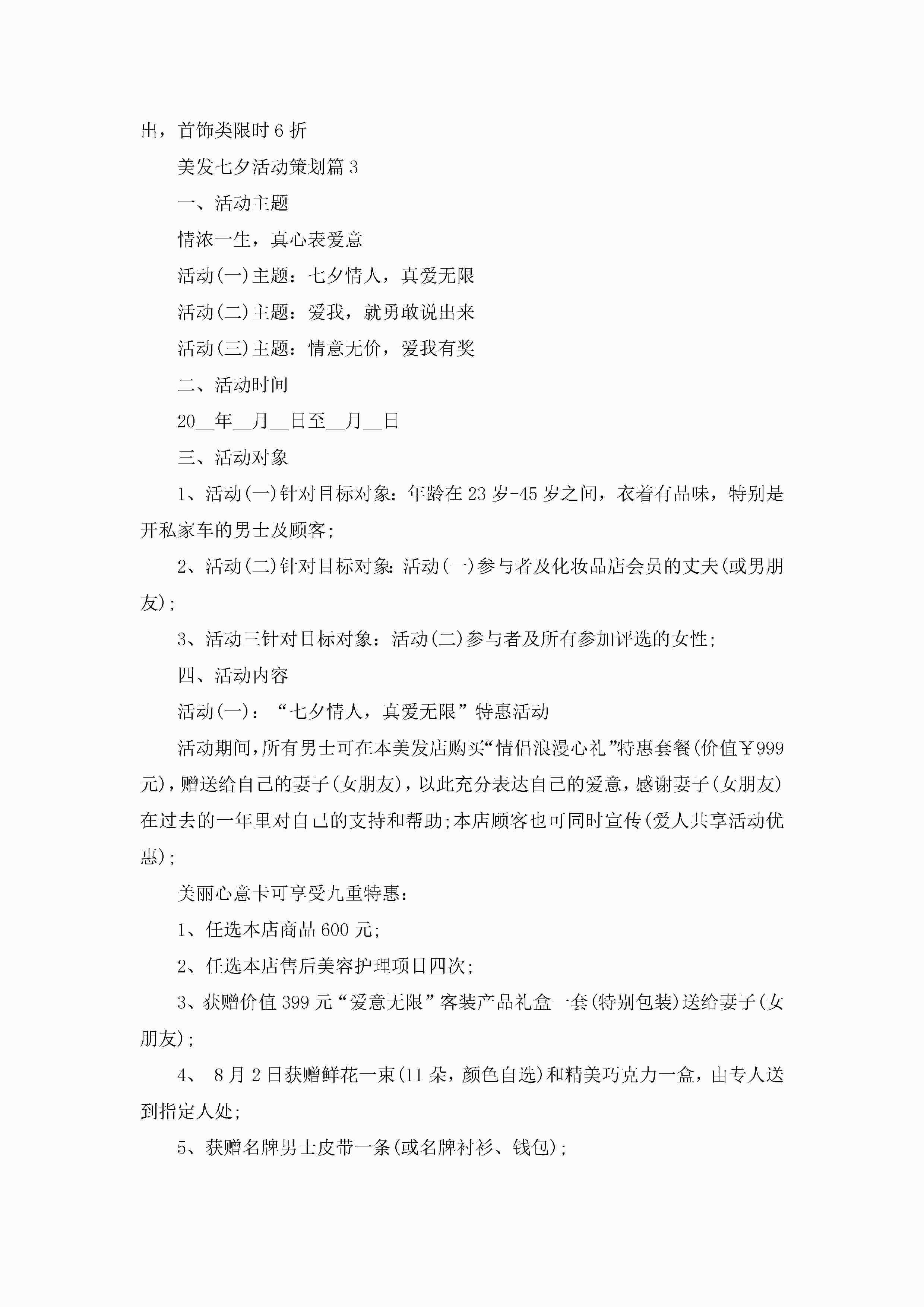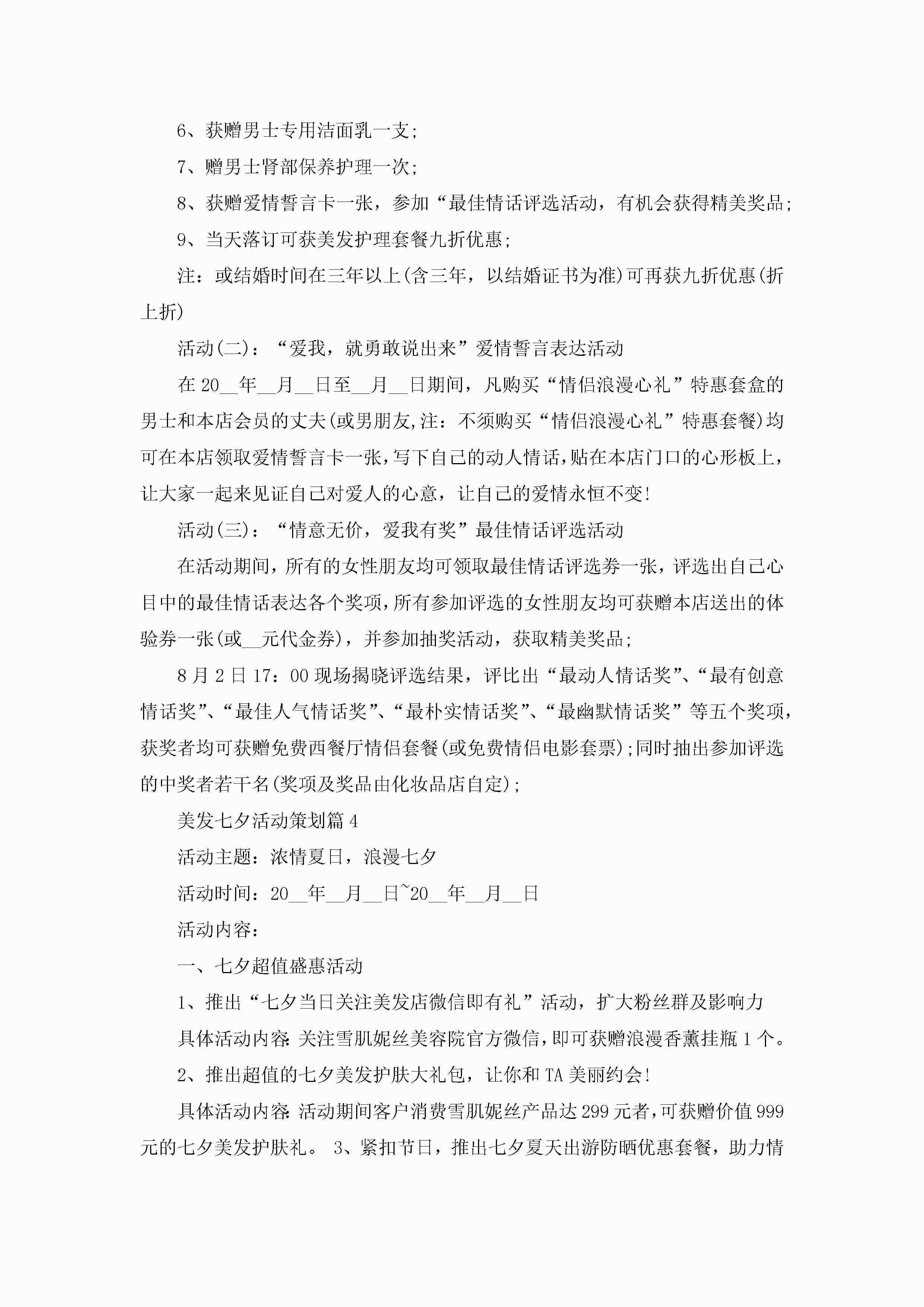 美发七夕活动策划(精选5篇)jugei3月29日 00:26更新关注211 美发七夕活动策划(精选5篇)此内容为付费资源,请付费后查看¥10.9 单篇文档限时特惠¥15个人会员开通企业会员开通立即下载无需登陆!可直接快捷下载单个模板付费资源© 版权声明THE ENDWord模板# 实用文档# 策划书# 工作文档# 活动策划 如有问题,可点击最底部“联系我们”联系客服 分享QQ空间微博QQ好友海报分享复制链接收藏