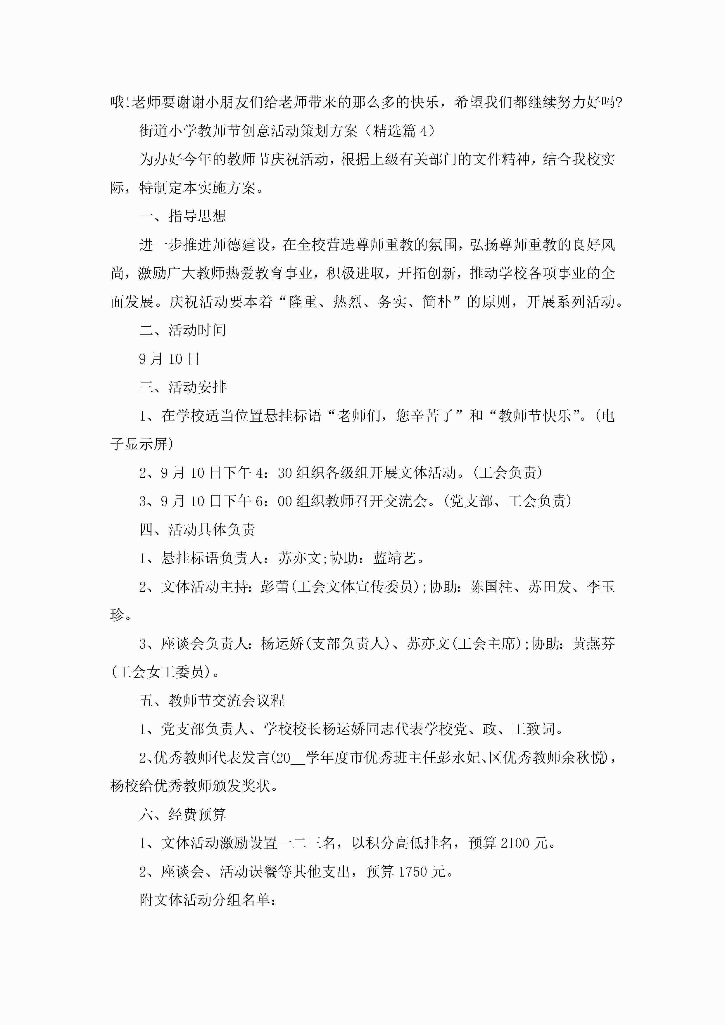 街道小学教师节创意活动策划方案(精选5篇)jugei3月29日 00:26更新关注260 街道小学教师节创意活动策划方案(精选5篇)此内容为付费资源,请付费后查看¥10.9 单篇文档限时特惠¥15个人会员开通企业会员开通立即下载无需登陆!可直接快捷下载单个模板付费资源© 版权声明THE ENDWord模板# 实用文档# 策划书# 工作文档# 活动策划# 街道小学教师节创意活动策划方案 如有问题,可点击最底部“联系我们”联系客服 分享QQ空间微博QQ好友海报分享复制链接收藏
