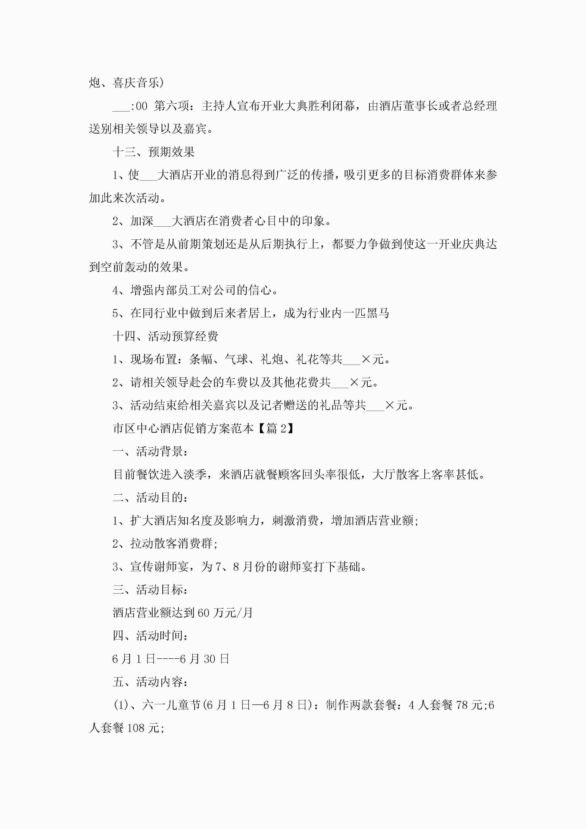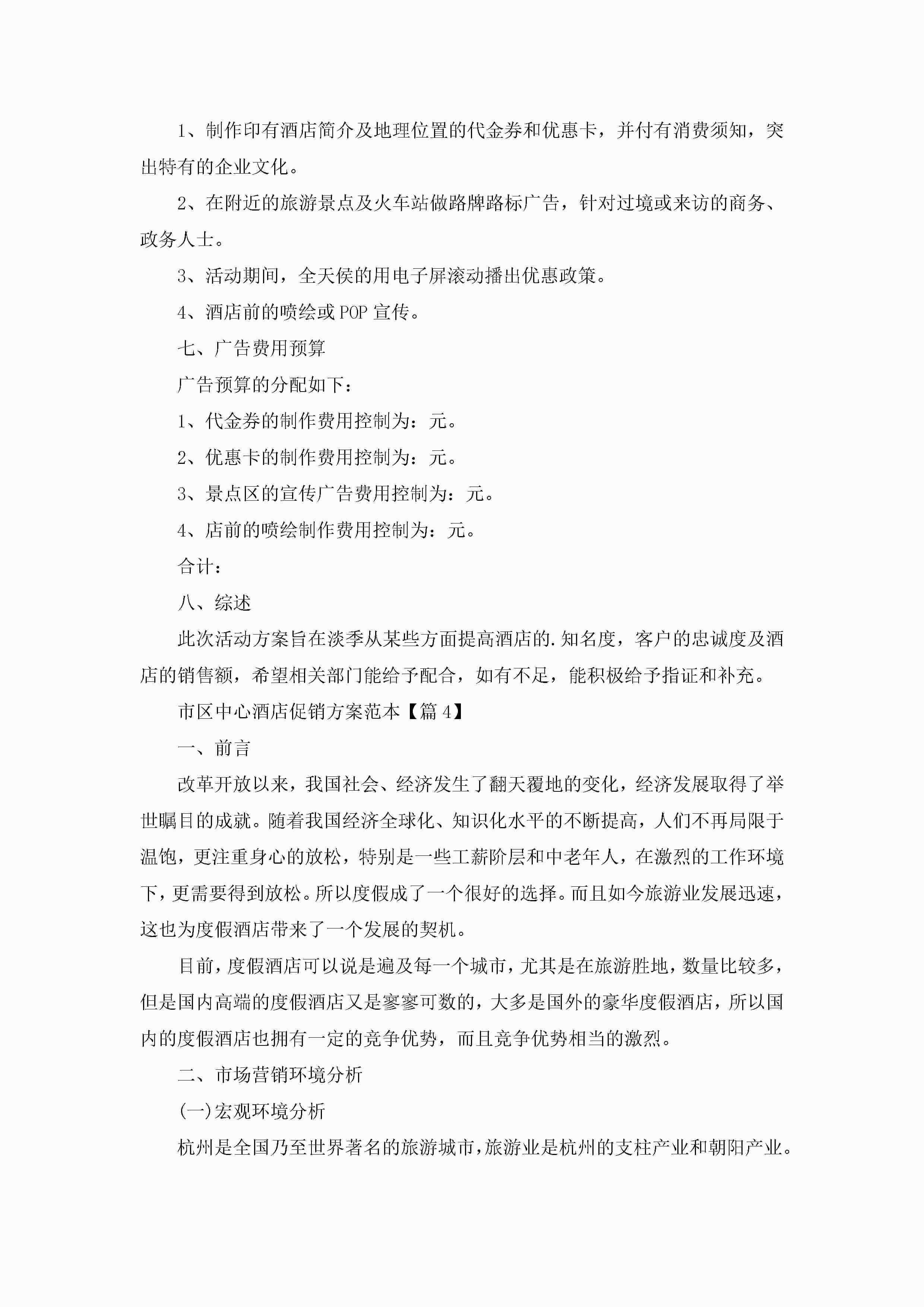 市区中心酒店促销方案范本5篇jugei3月29日 00:26更新关注211 市区中心酒店促销方案范本5篇此内容为付费资源,请付费后查看¥10.9 单篇文档限时特惠¥15个人会员开通企业会员开通立即下载无需登陆!可直接快捷下载单个模板付费资源© 版权声明THE ENDWord模板# 实用文档# 策划书# 工作文档# 活动策划 如有问题,可点击最底部“联系我们”联系客服 分享QQ空间微博QQ好友海报分享复制链接收藏