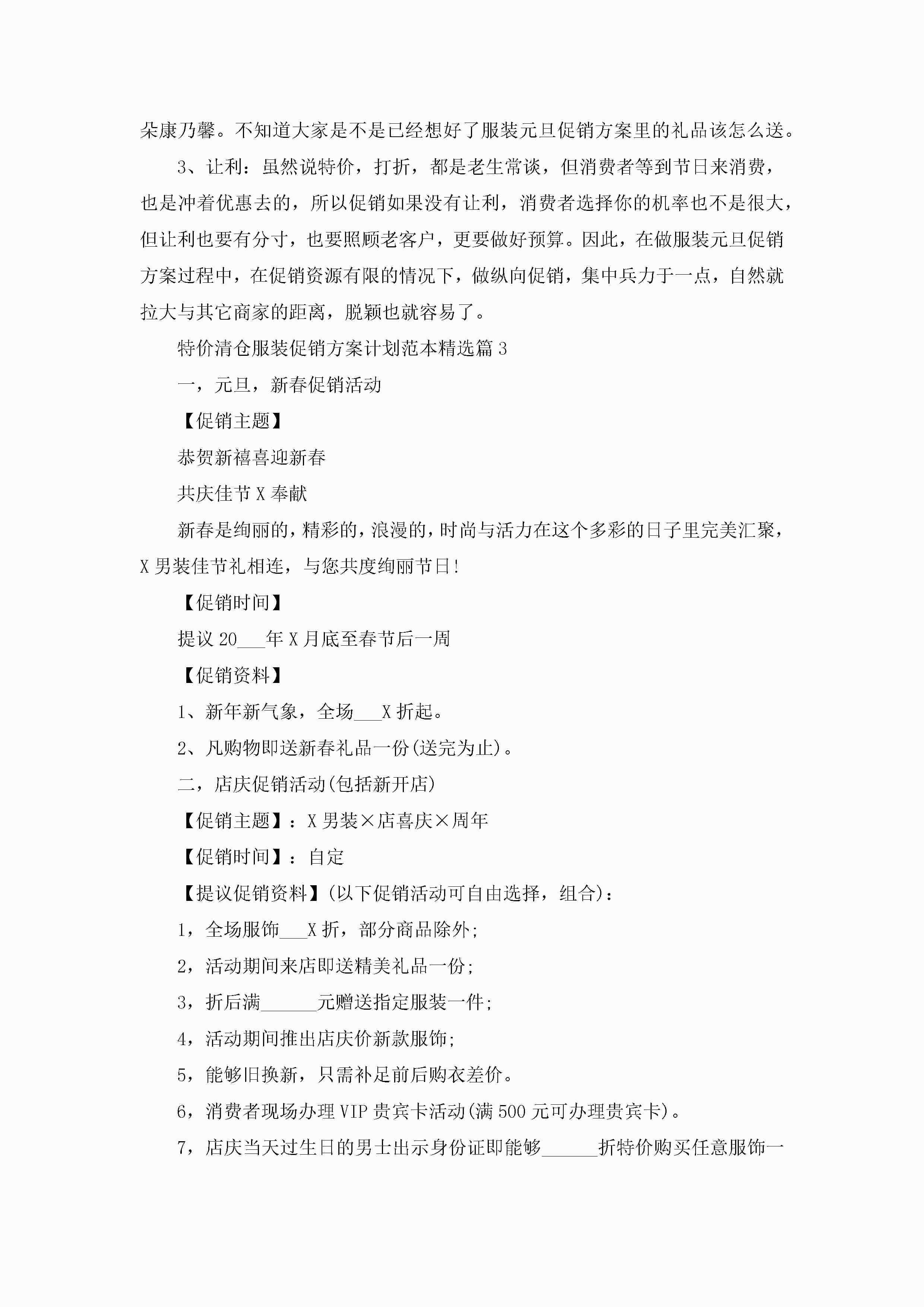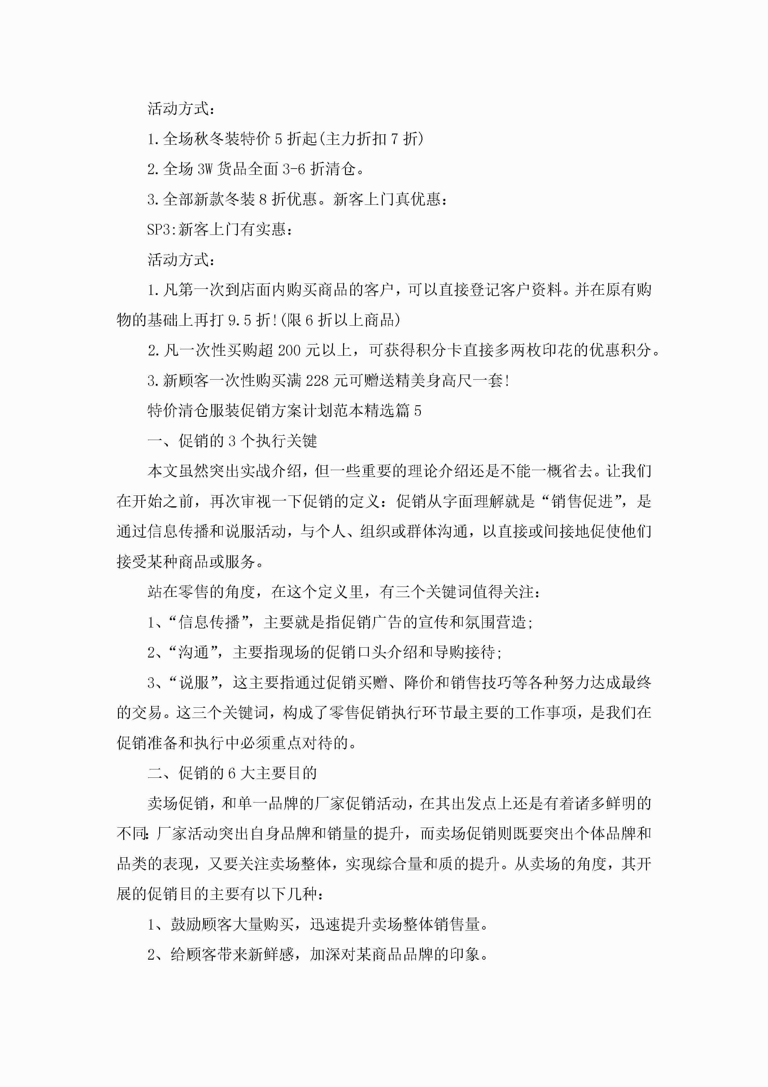特价清仓服装促销方案计划范本5篇jugei3月29日 00:26更新关注331 特价清仓服装促销方案计划范本5篇此内容为付费资源,请付费后查看¥10.9 单篇文档限时特惠¥15个人会员开通企业会员开通立即下载无需登陆!可直接快捷下载单个模板付费资源© 版权声明THE ENDWord模板# 实用文档# 策划书# 工作文档# 活动策划 如有问题,可点击最底部“联系我们”联系客服 分享QQ空间微博QQ好友海报分享复制链接收藏