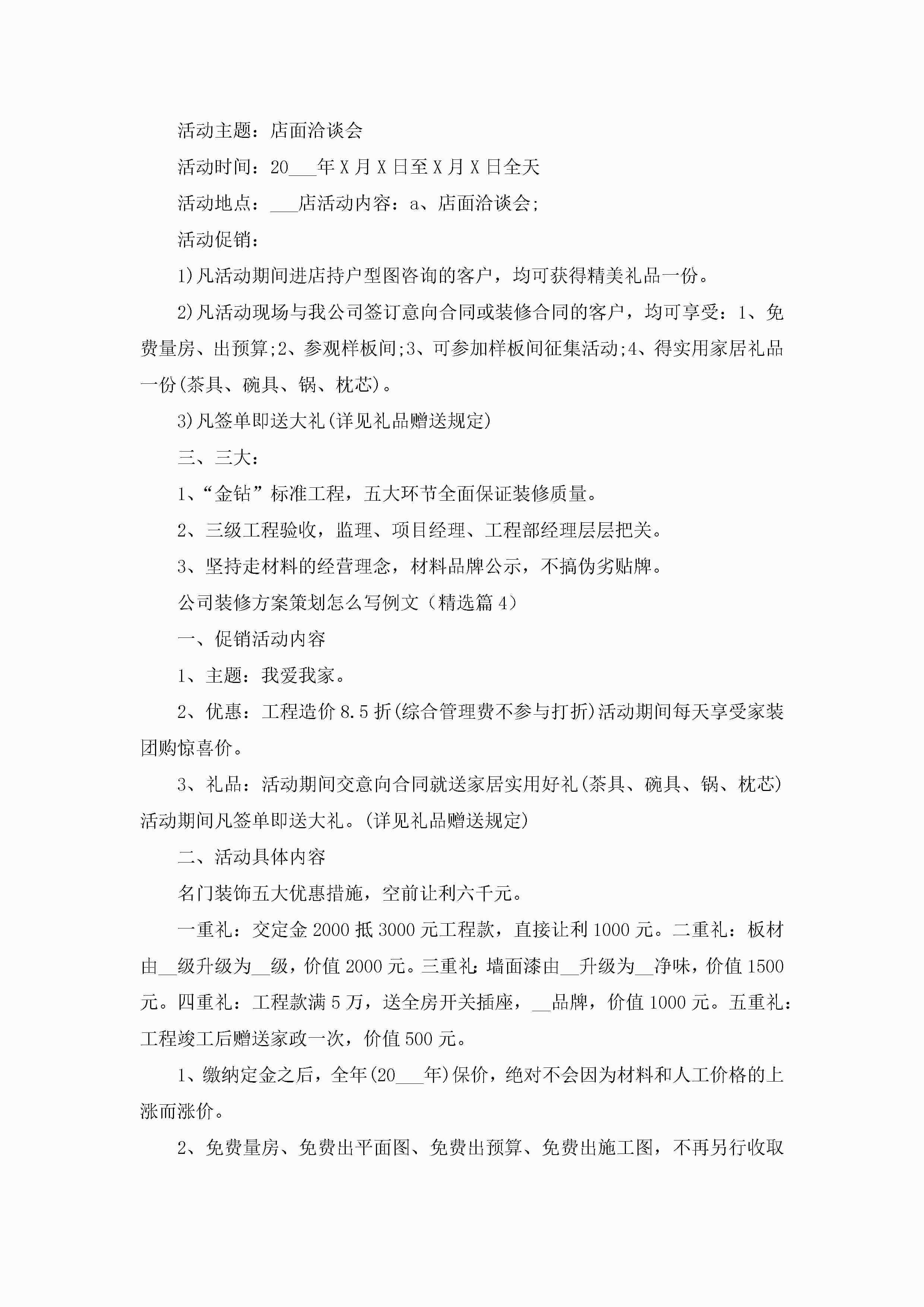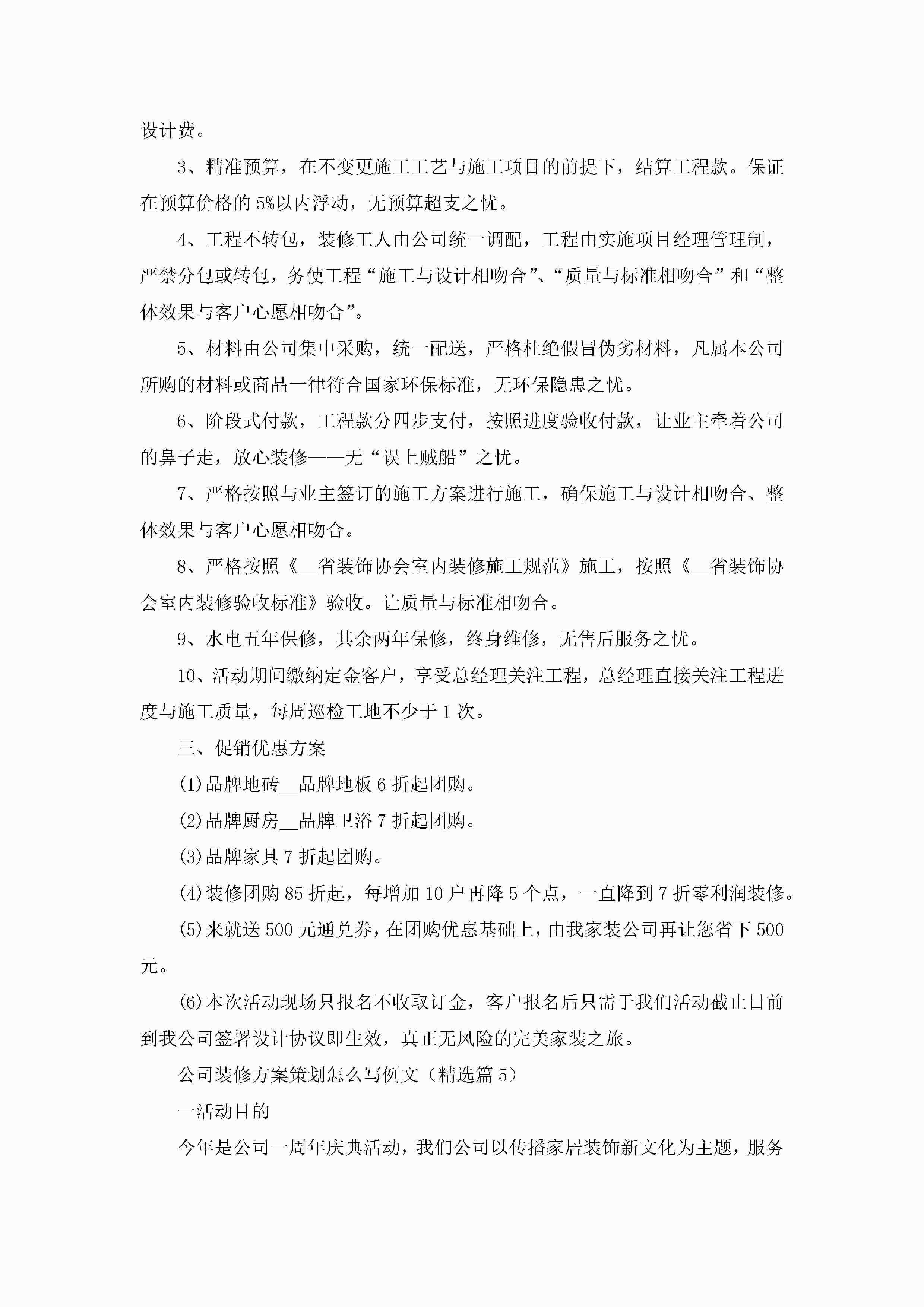 公司装修方案策划怎么写例文5篇jugei3月29日 00:27更新关注273 公司装修方案策划怎么写例文5篇此内容为付费资源,请付费后查看¥10.9 单篇文档限时特惠¥15个人会员开通企业会员开通立即下载无需登陆!可直接快捷下载单个模板付费资源© 版权声明THE ENDWord模板# 实用文档# 策划书# 工作文档# 活动策划 如有问题,可点击最底部“联系我们”联系客服 分享QQ空间微博QQ好友海报分享复制链接收藏