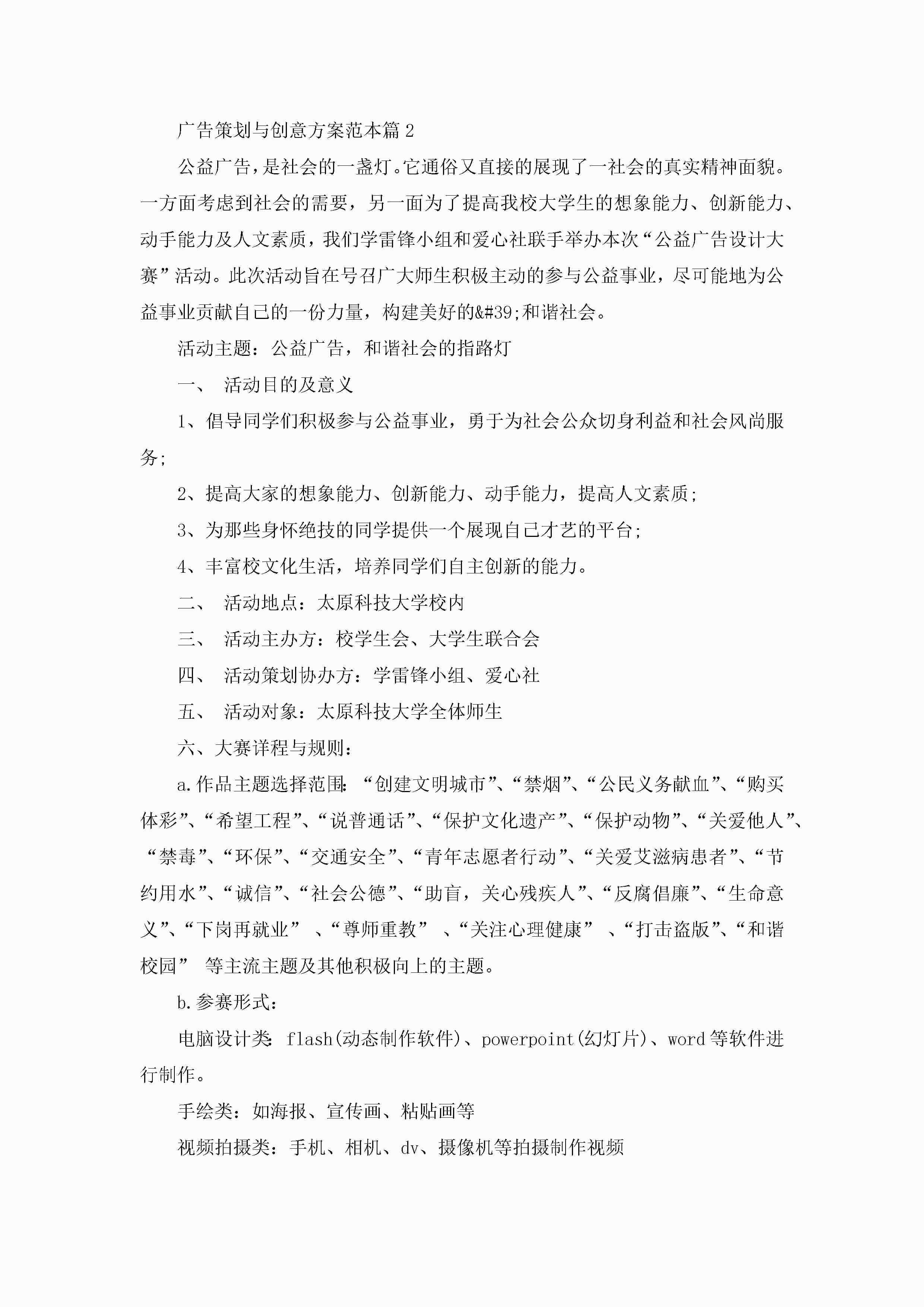 广告策划与创意方案5篇范本jugei3月29日 00:27更新关注221 广告策划与创意方案5篇范本此内容为付费资源,请付费后查看¥10.9 单篇文档限时特惠¥15个人会员开通企业会员开通立即下载无需登陆!可直接快捷下载单个模板付费资源© 版权声明THE ENDWord模板# 实用文档# 策划书# 工作文档# 活动策划 如有问题,可点击最底部“联系我们”联系客服 分享QQ空间微博QQ好友海报分享复制链接收藏