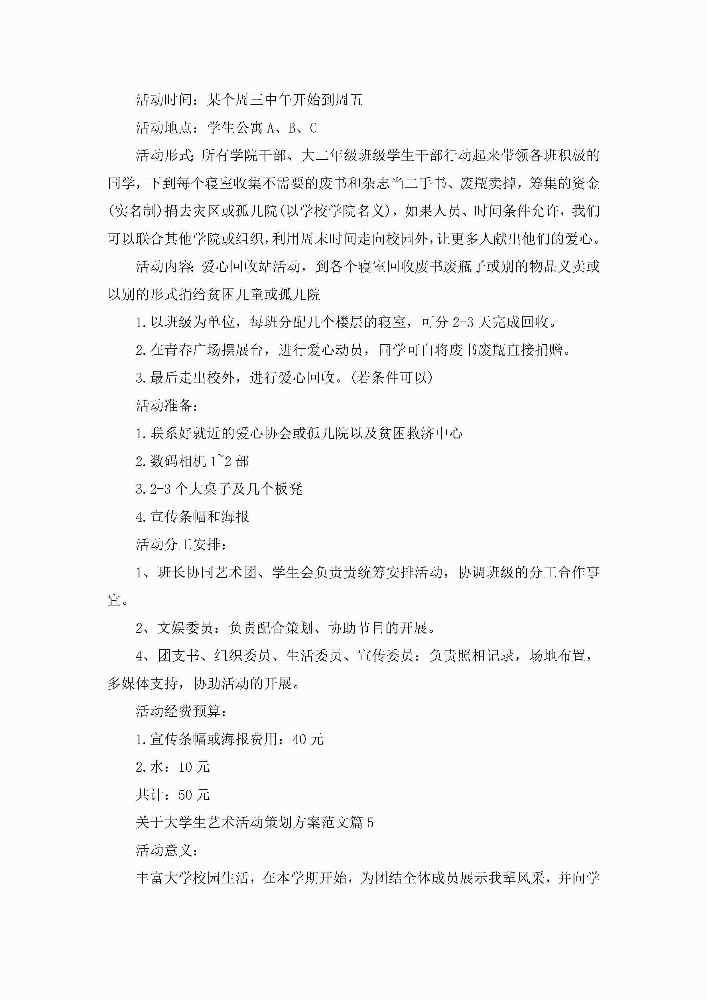 关于大学生艺术活动策划方案范文5篇jugei3月29日 00:27更新关注218 关于大学生艺术活动策划方案范文5篇此内容为付费资源,请付费后查看¥10.9 单篇文档限时特惠¥15个人会员开通企业会员开通立即下载无需登陆!可直接快捷下载单个模板付费资源© 版权声明THE ENDWord模板# 实用文档# 策划书# 工作文档# 活动策划 如有问题,可点击最底部“联系我们”联系客服 分享QQ空间微博QQ好友海报分享复制链接收藏