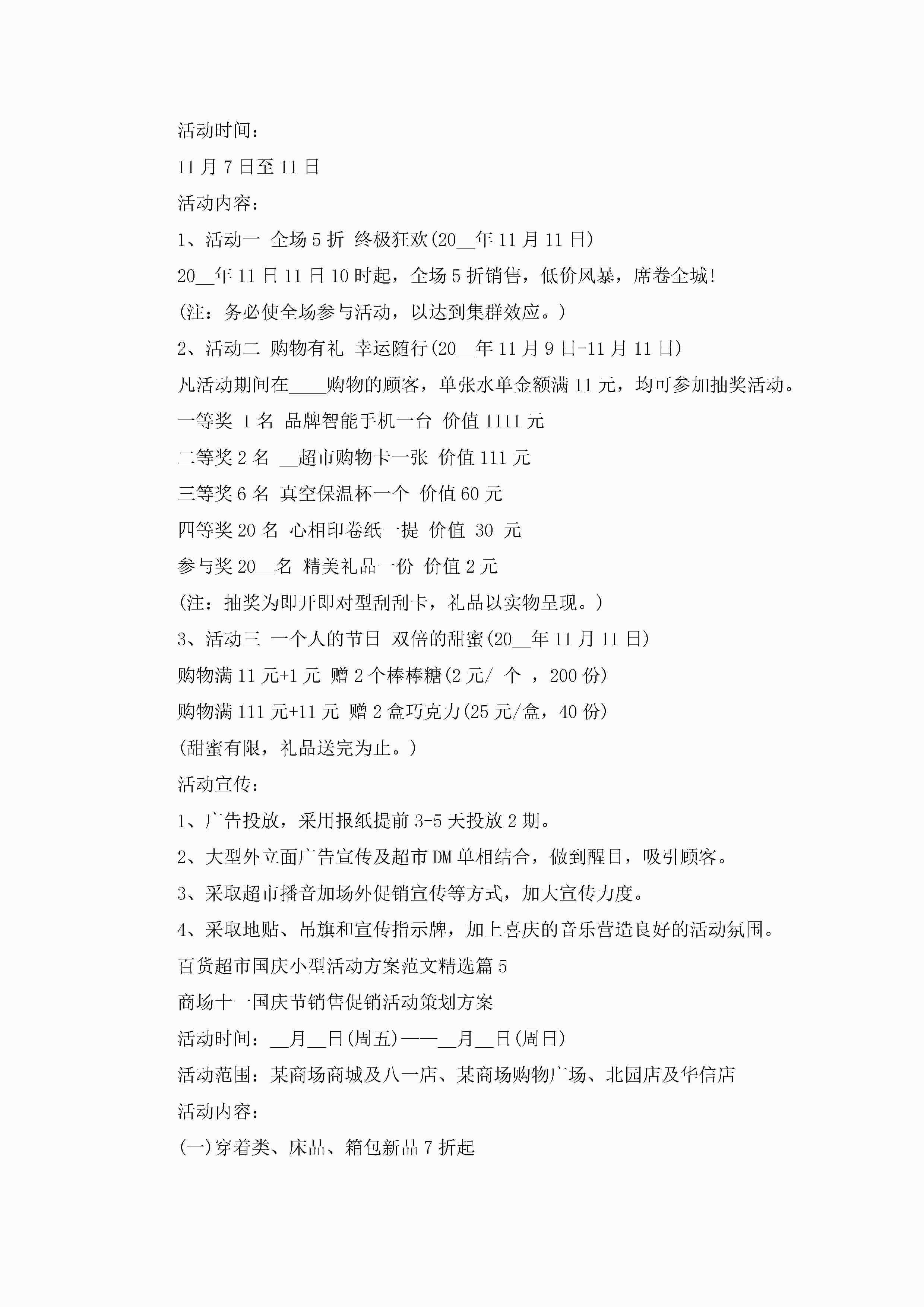 百货超市国庆小型活动方案范文5篇jugei3月29日 00:27更新关注213 百货超市国庆小型活动方案范文5篇此内容为付费资源,请付费后查看¥10.9 单篇文档限时特惠¥15个人会员开通企业会员开通立即下载无需登陆!可直接快捷下载单个模板付费资源© 版权声明THE ENDWord模板# 实用文档# 策划书# 工作文档# 活动策划 如有问题,可点击最底部“联系我们”联系客服 分享QQ空间微博QQ好友海报分享复制链接收藏