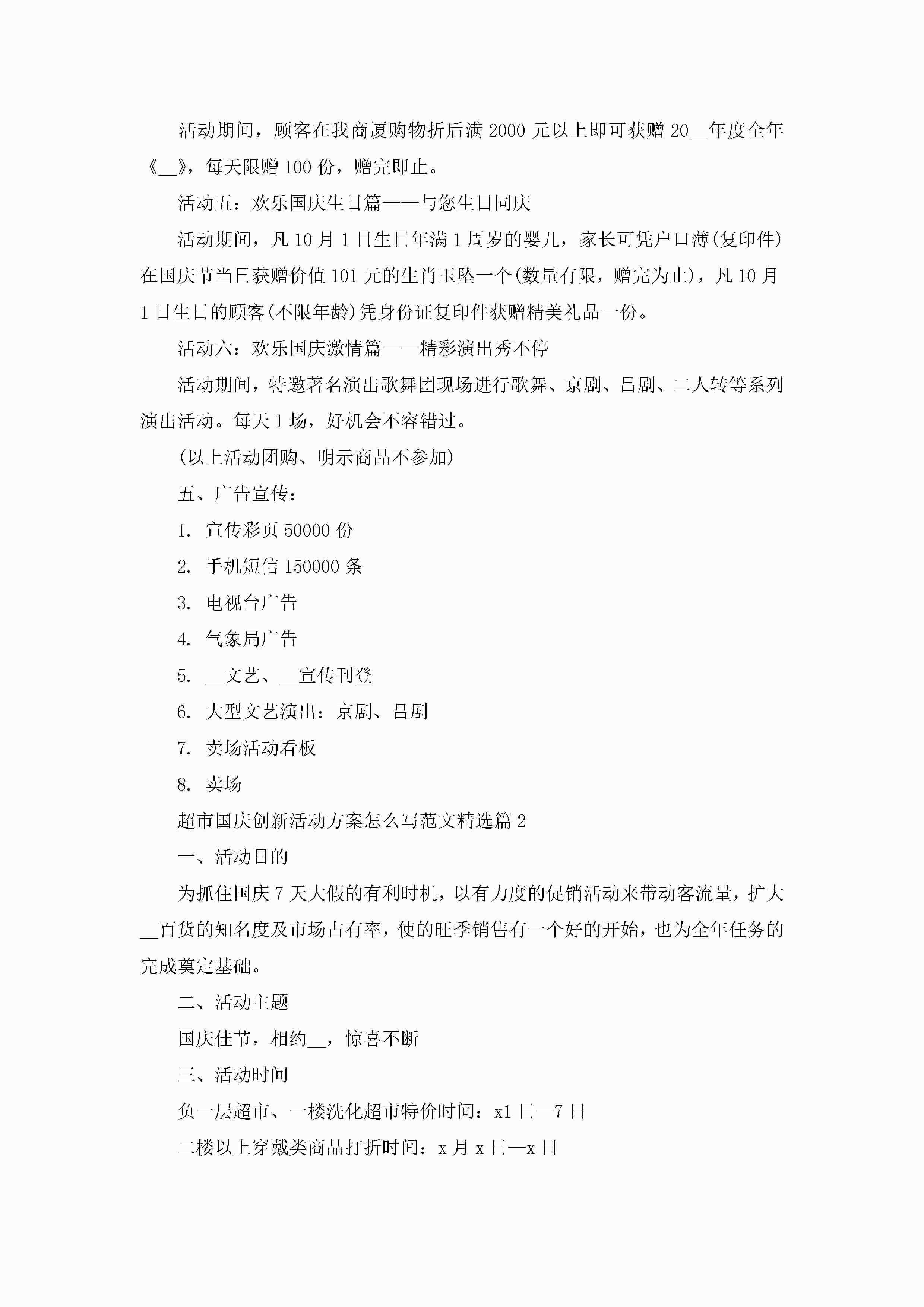 超市国庆创新活动方案怎么写范文5篇jugei3月29日 00:27更新关注294 超市国庆创新活动方案怎么写范文5篇此内容为付费资源,请付费后查看¥10.9 单篇文档限时特惠¥15个人会员开通企业会员开通立即下载无需登陆!可直接快捷下载单个模板付费资源© 版权声明THE ENDWord模板# 实用文档# 策划书# 工作文档# 活动策划 如有问题,可点击最底部“联系我们”联系客服 分享QQ空间微博QQ好友海报分享复制链接收藏