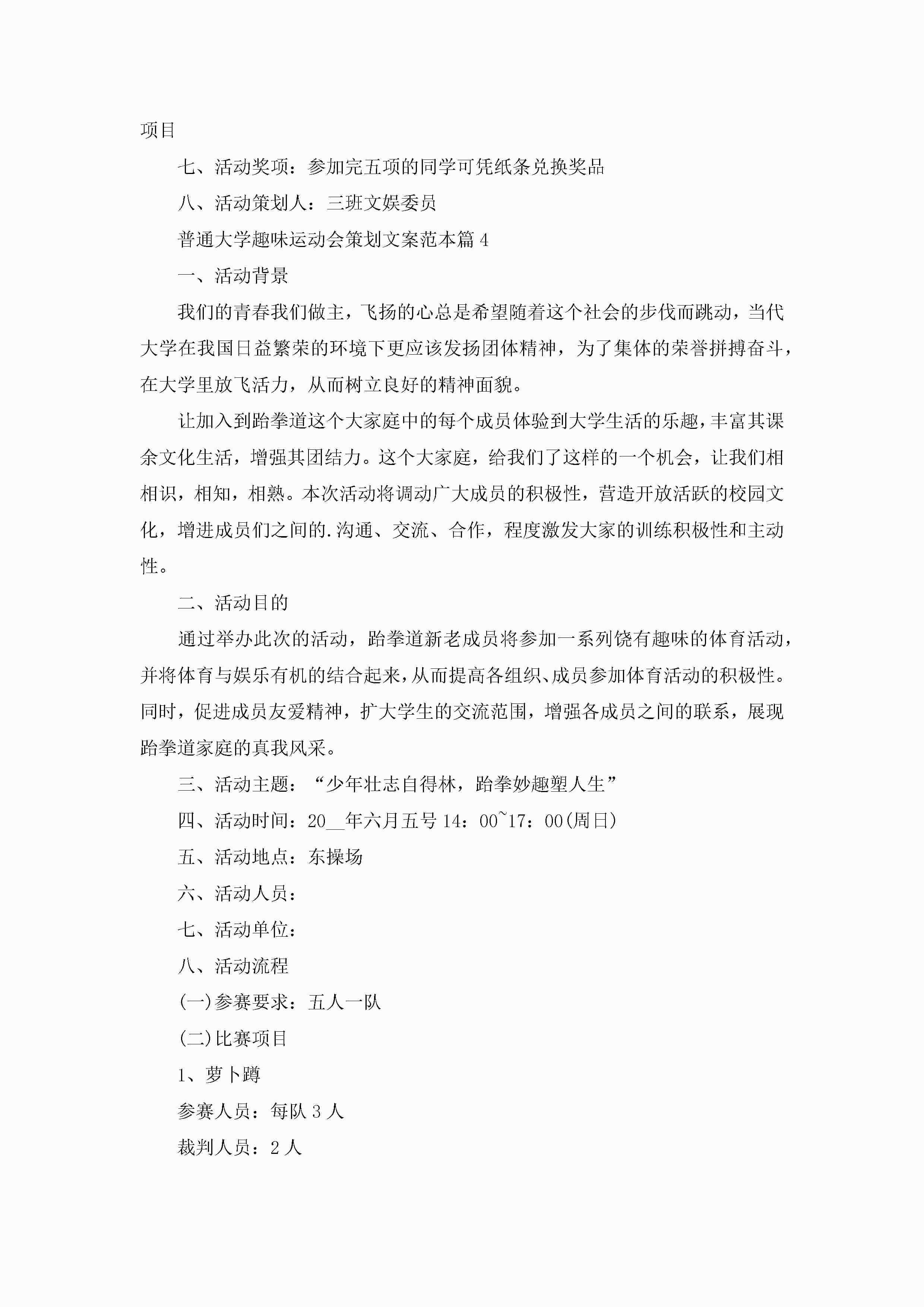 普通大学趣味运动会策划文案范本5篇jugei3月29日 00:27更新关注248 普通大学趣味运动会策划文案范本5篇此内容为付费资源,请付费后查看¥10.9 单篇文档限时特惠¥15个人会员开通企业会员开通立即下载无需登陆!可直接快捷下载单个模板付费资源© 版权声明THE ENDWord模板# 实用文档# 策划书# 工作文档# 活动策划 如有问题,可点击最底部“联系我们”联系客服 分享QQ空间微博QQ好友海报分享复制链接收藏