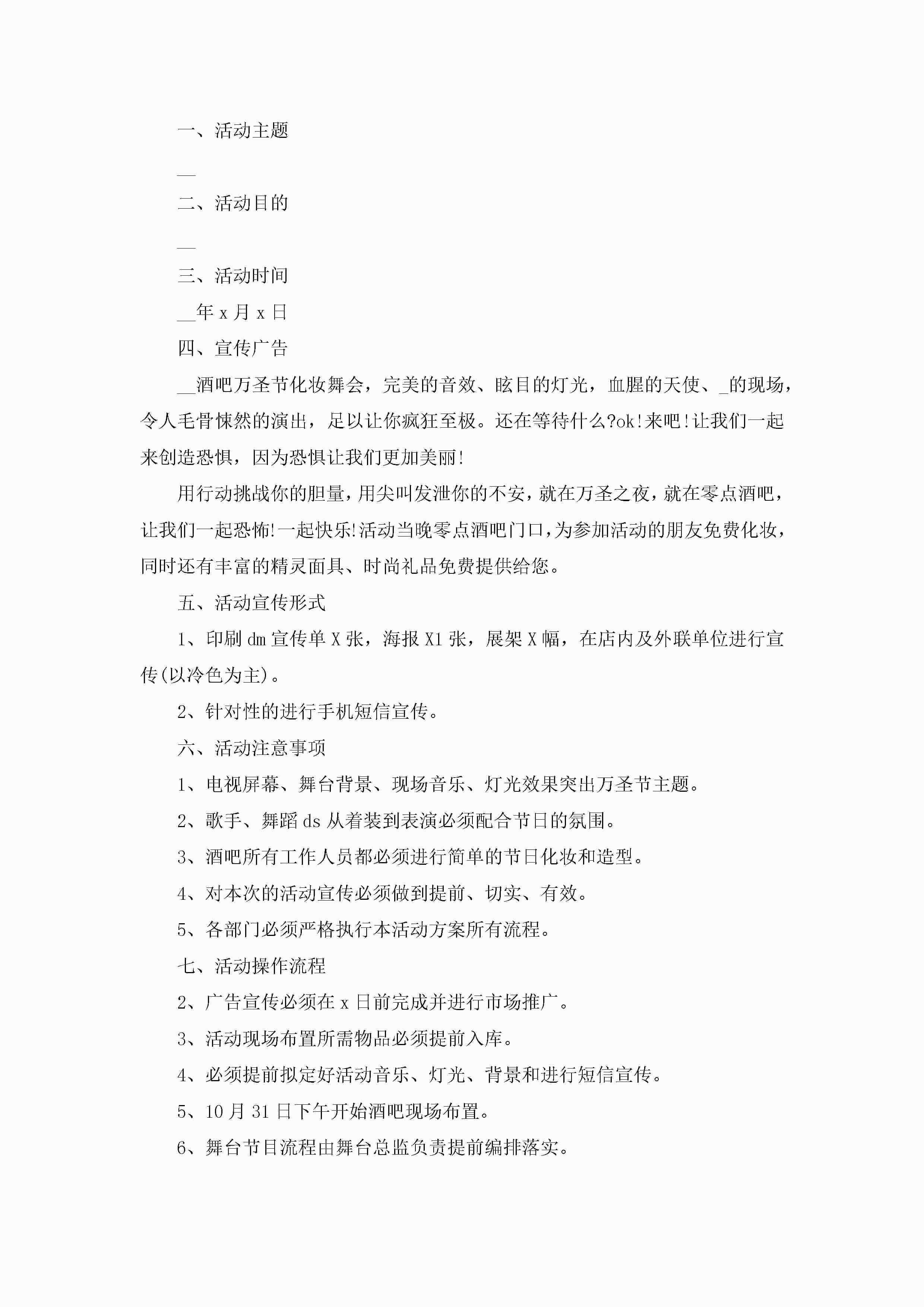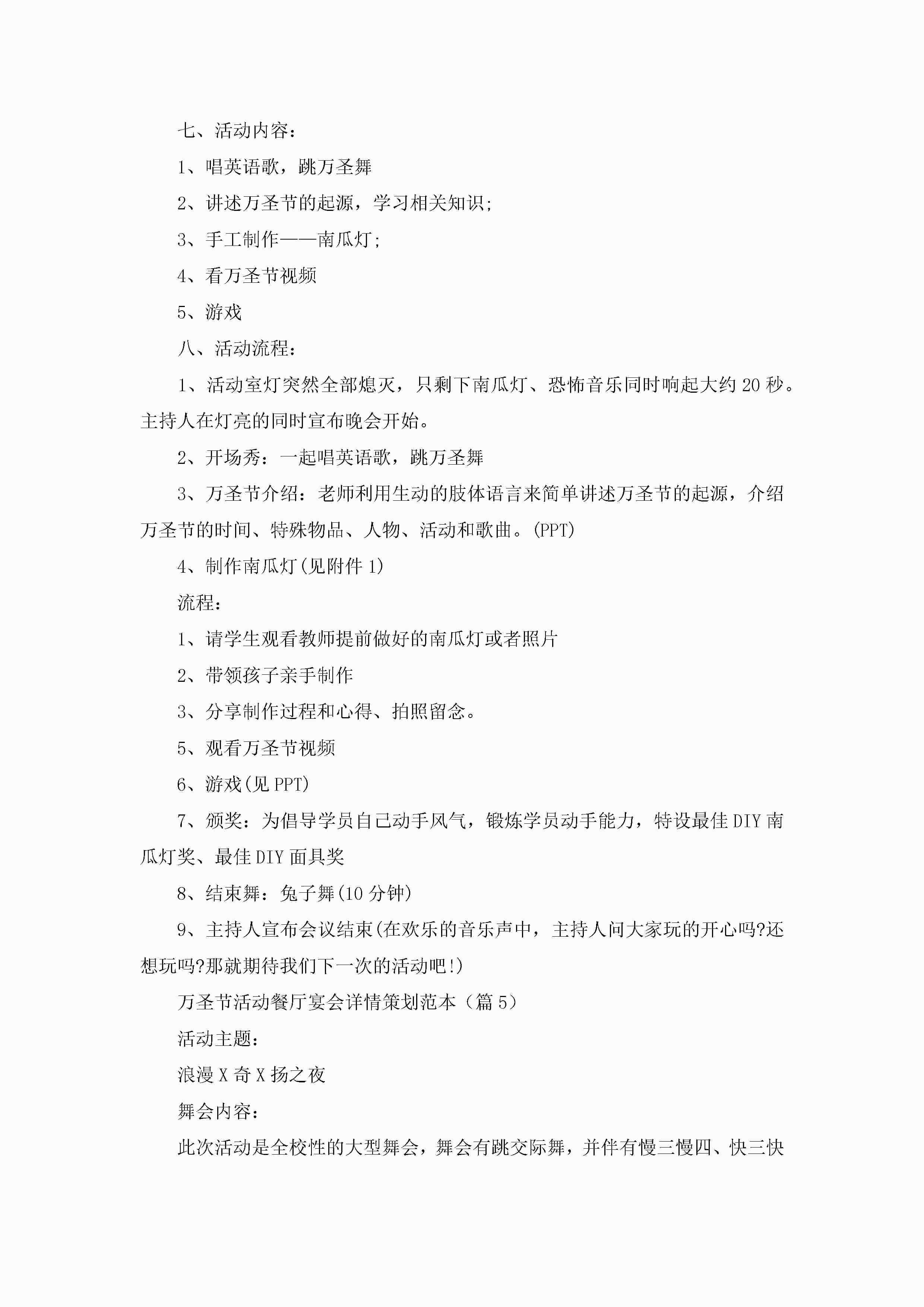 万圣节活动餐厅宴会详情策划范本5篇jugei3月29日 00:27更新关注364 万圣节活动餐厅宴会详情策划范本5篇此内容为付费资源,请付费后查看¥10.9 单篇文档限时特惠¥15个人会员开通企业会员开通立即下载无需登陆!可直接快捷下载单个模板付费资源© 版权声明THE ENDWord模板# 实用文档# 策划书# 活动策划# 万圣节活动餐厅宴会详情策划 如有问题,可点击最底部“联系我们”联系客服 分享QQ空间微博QQ好友海报分享复制链接收藏