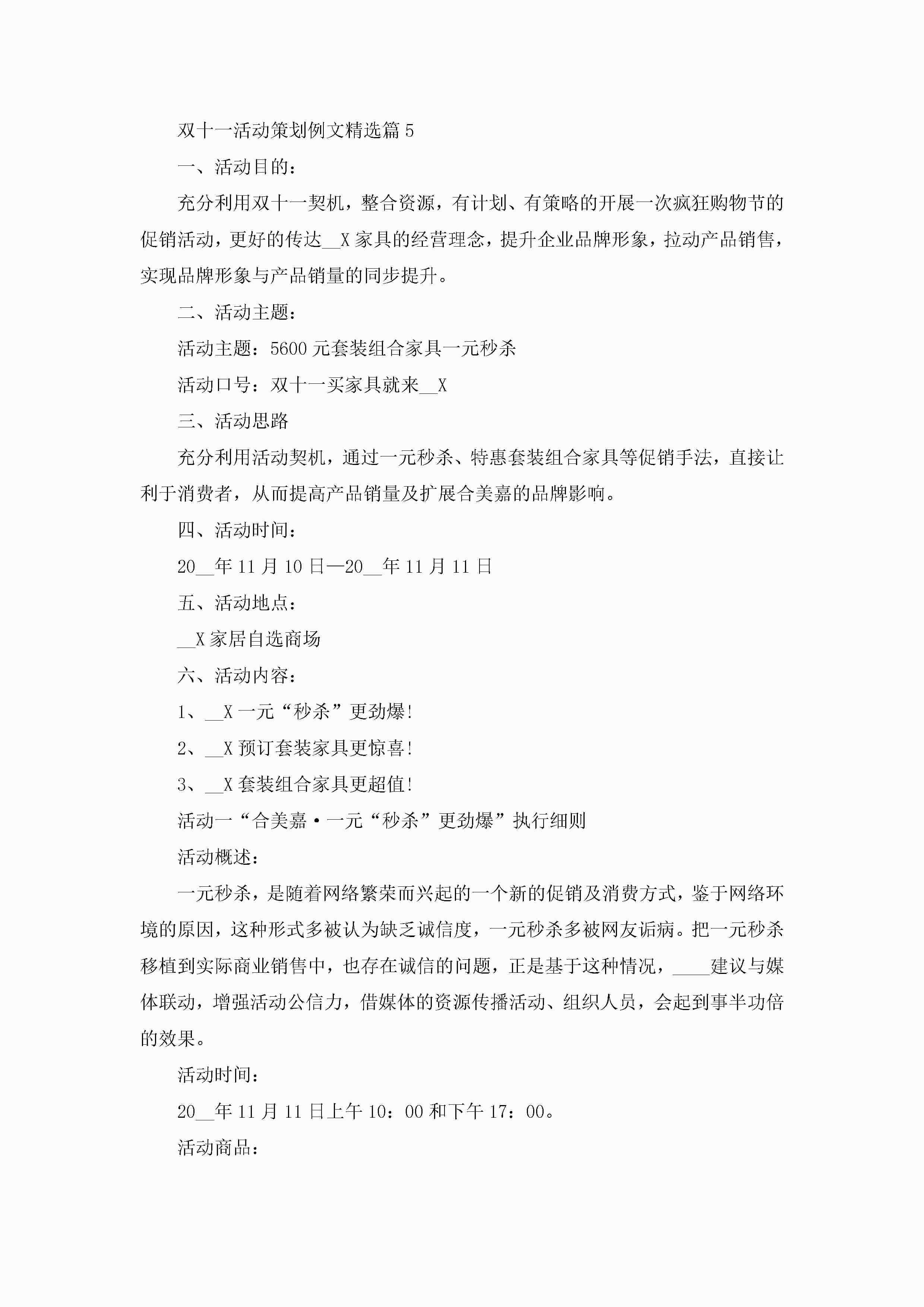 双十一活动策划例文5篇jugei3月29日 00:27更新关注356 双十一活动策划例文5篇此内容为付费资源,请付费后查看¥10.9 单篇文档限时特惠¥15个人会员开通企业会员开通立即下载无需登陆!可直接快捷下载单个模板付费资源© 版权声明THE ENDWord模板# 实用文档# 策划书# 工作文档# 活动策划 如有问题,可点击最底部“联系我们”联系客服 分享QQ空间微博QQ好友海报分享复制链接收藏